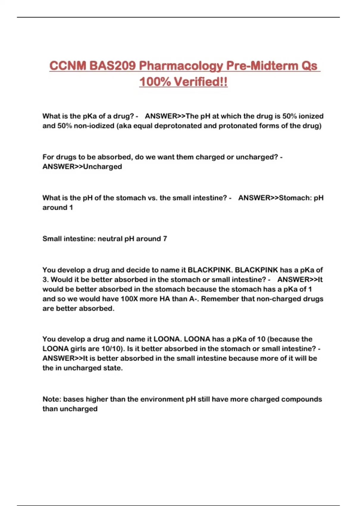 CCNM BAS209 Pharmacology Pre-Midterm Qs 100% Verified!!
