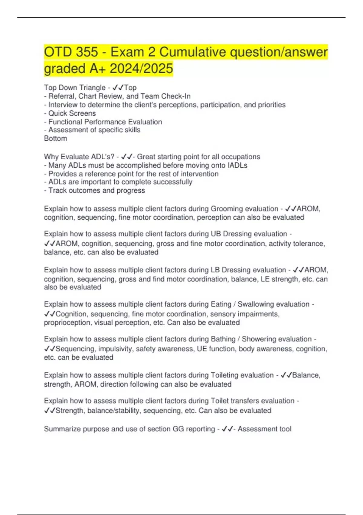 OTD 355 - Exam 2 Cumulative question/answer graded A+ 2024/2025