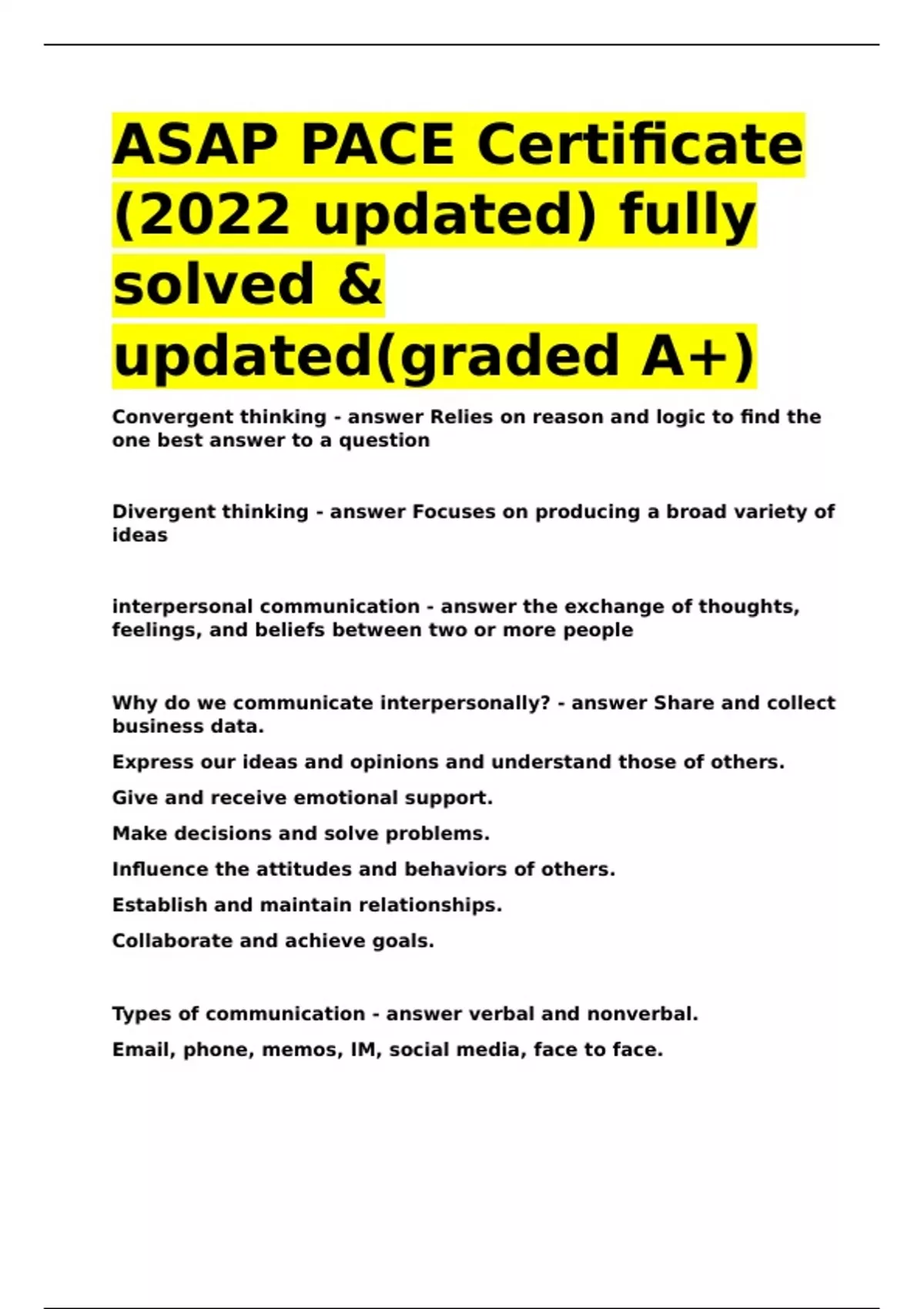 ASAP PACE Certification (2020) fully solved & updated(graded A+)