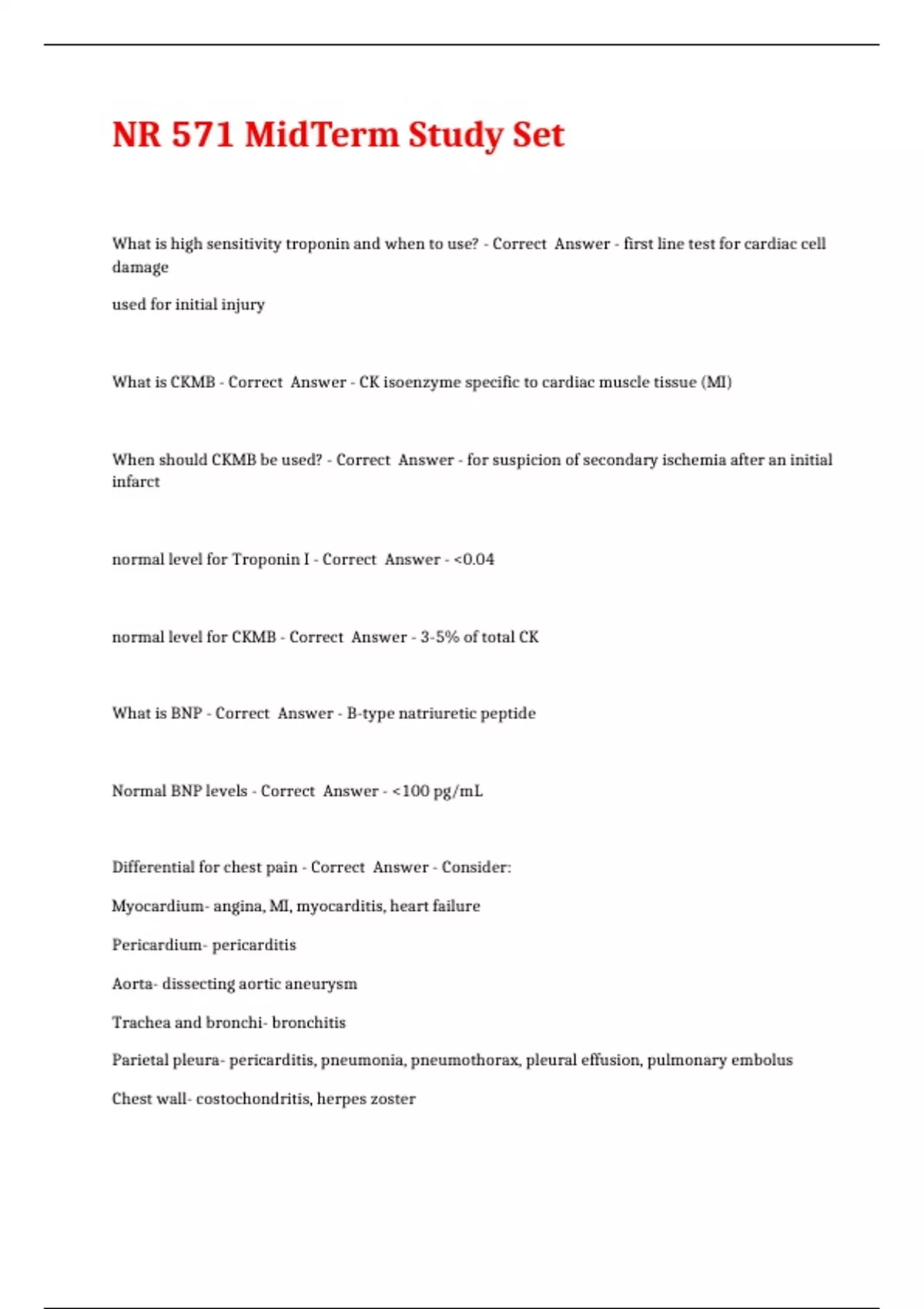 When should CKMB be used? - Correct Answer - for suspicion of secondary ischemia after an initial
