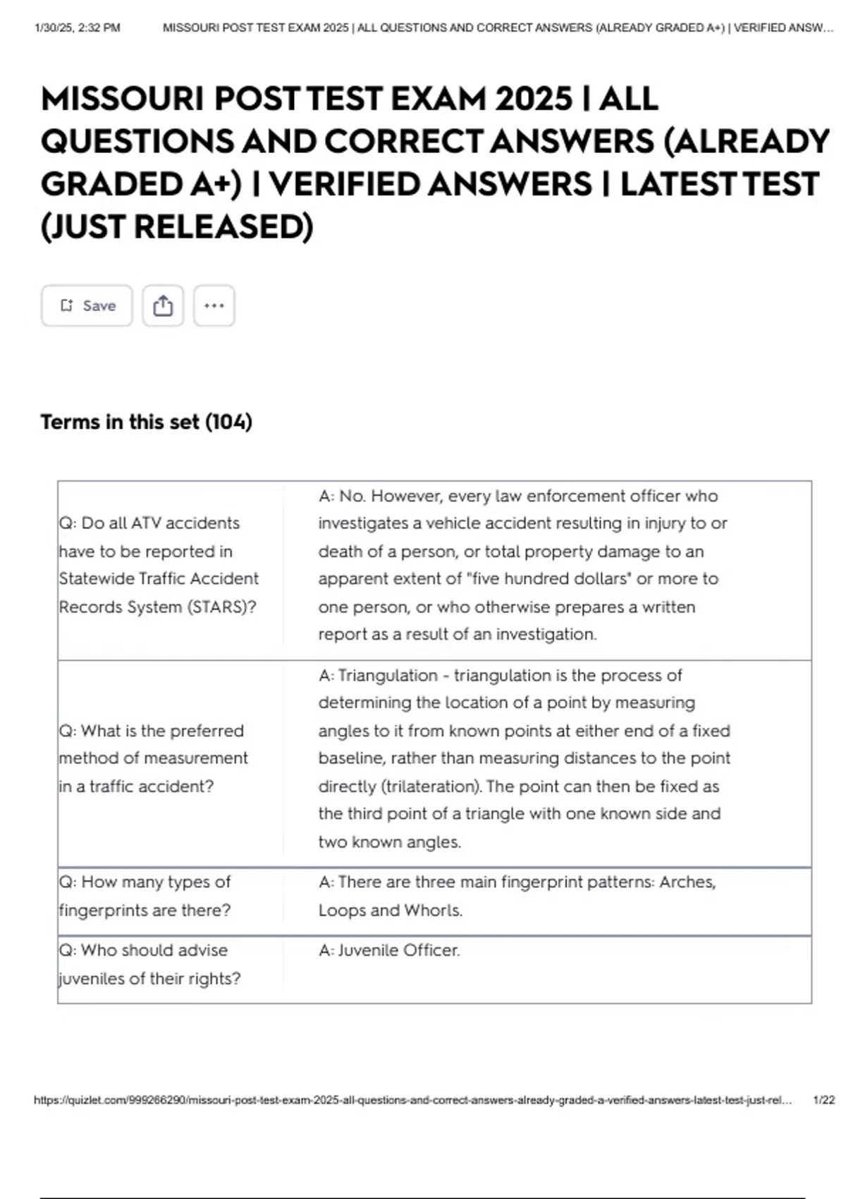 , 1/30/25, 2:32 PM MISSOURI POST TEST EXAM 2025 | ALL QUESTIONS AND CORRECT ANSWERS (ALREADY GRADED A+) | VERIFIED ANSW…