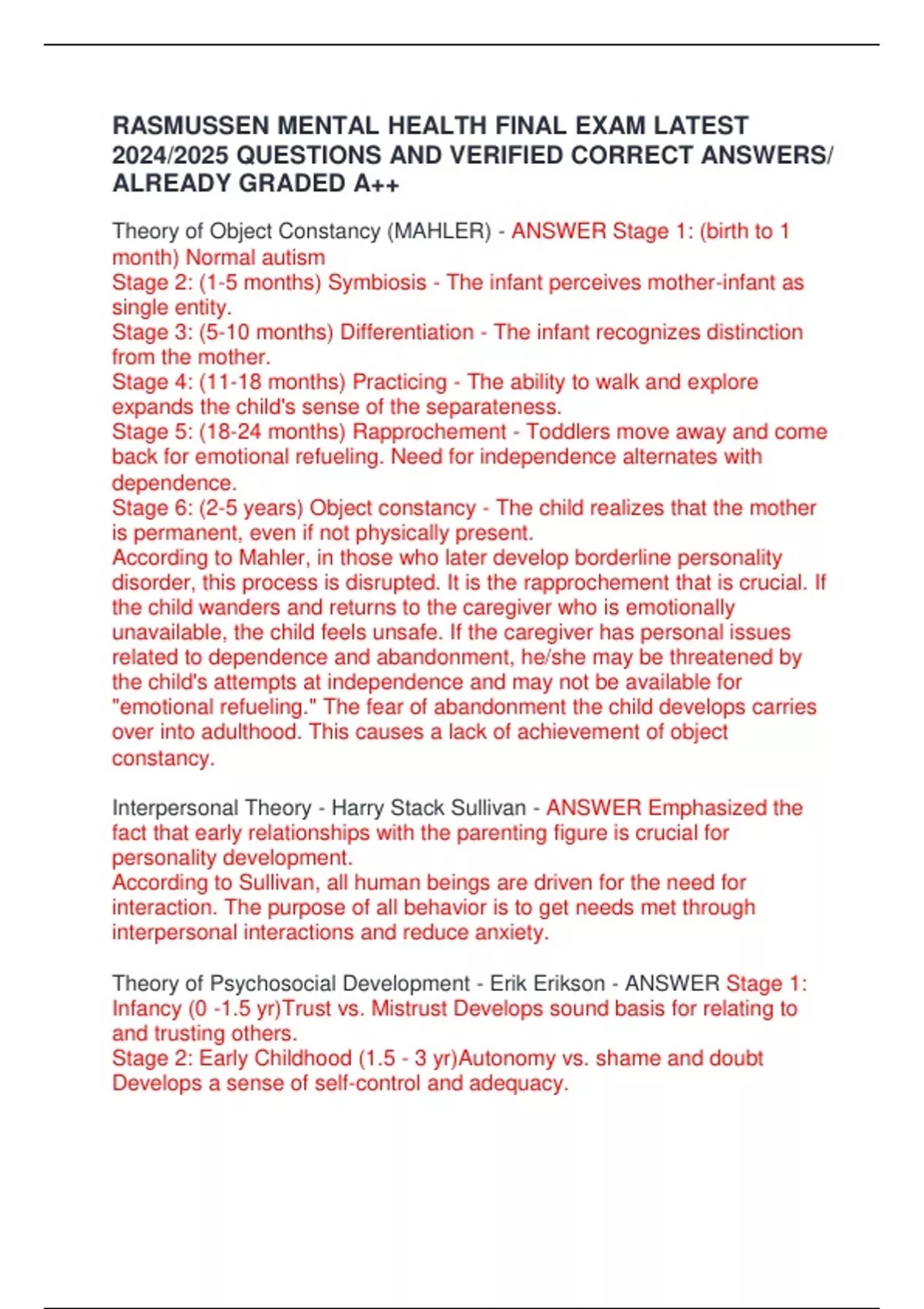 RASMUSSEN MENTAL HEALTH FINAL EXAM LATEST