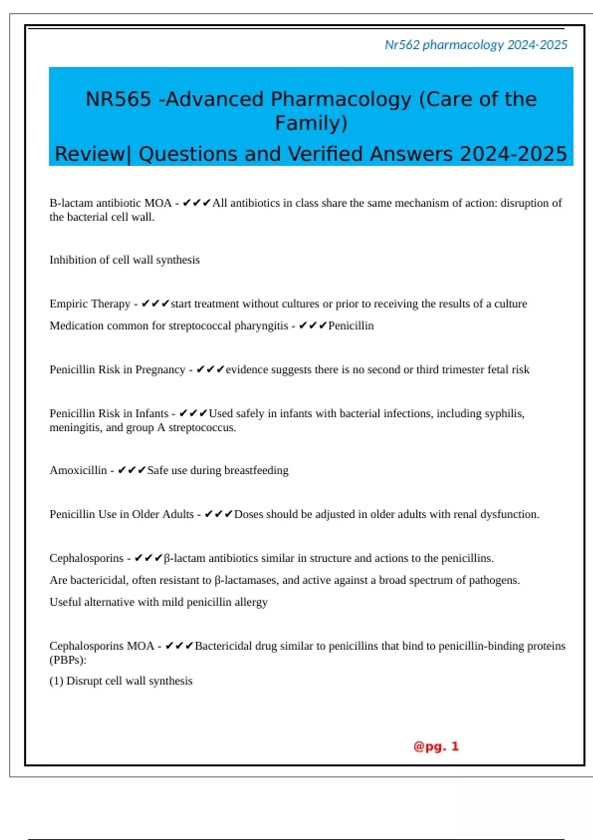 Cephalosporin Monitoring - ✔✔✔Check renal function if prolonged therapy