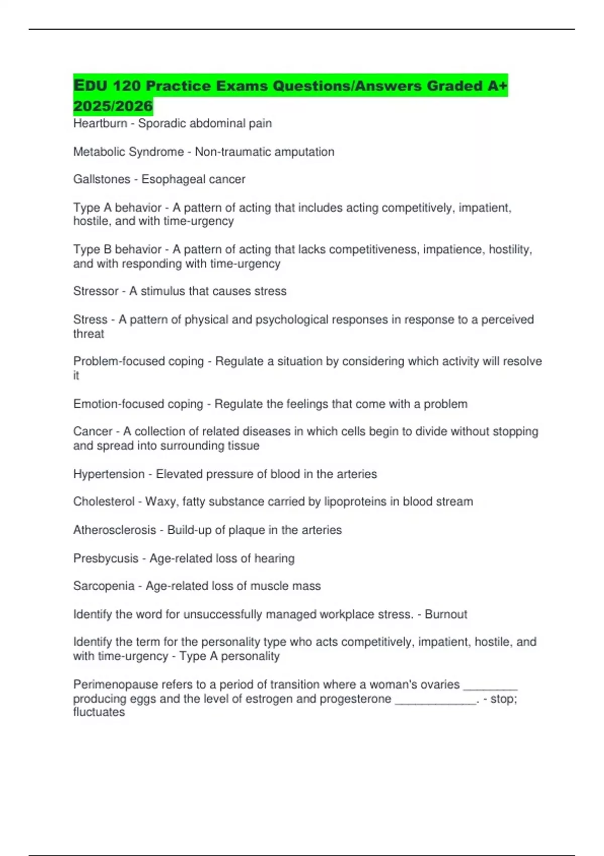 Stress - A pattern of physical and psychological responses in response to a perceived
