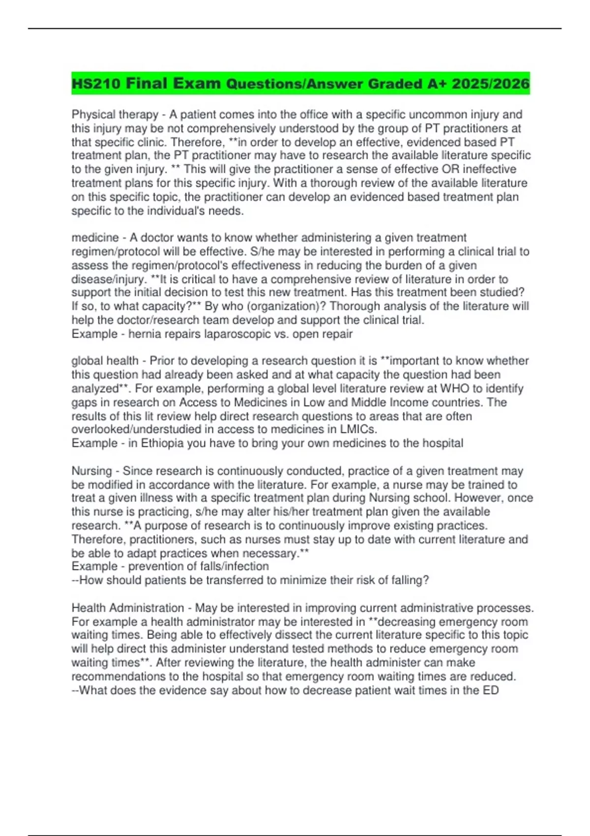 disease/injury. **It is critical to have a comprehensive review of literature in order to