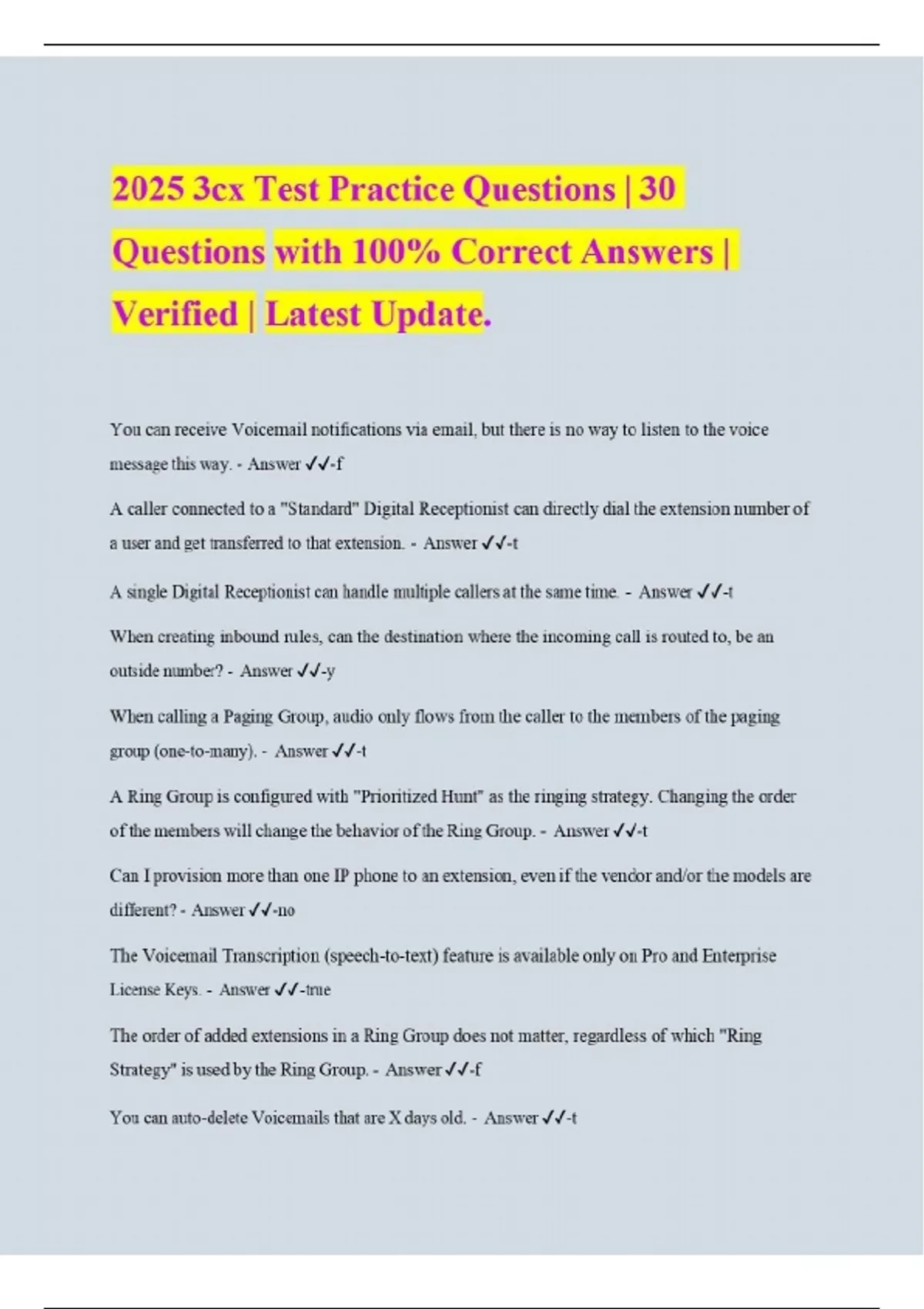 2025 3cx Test Practice Questions | 30 Questions with 100% Correct Answers | Verified | Latest Update.