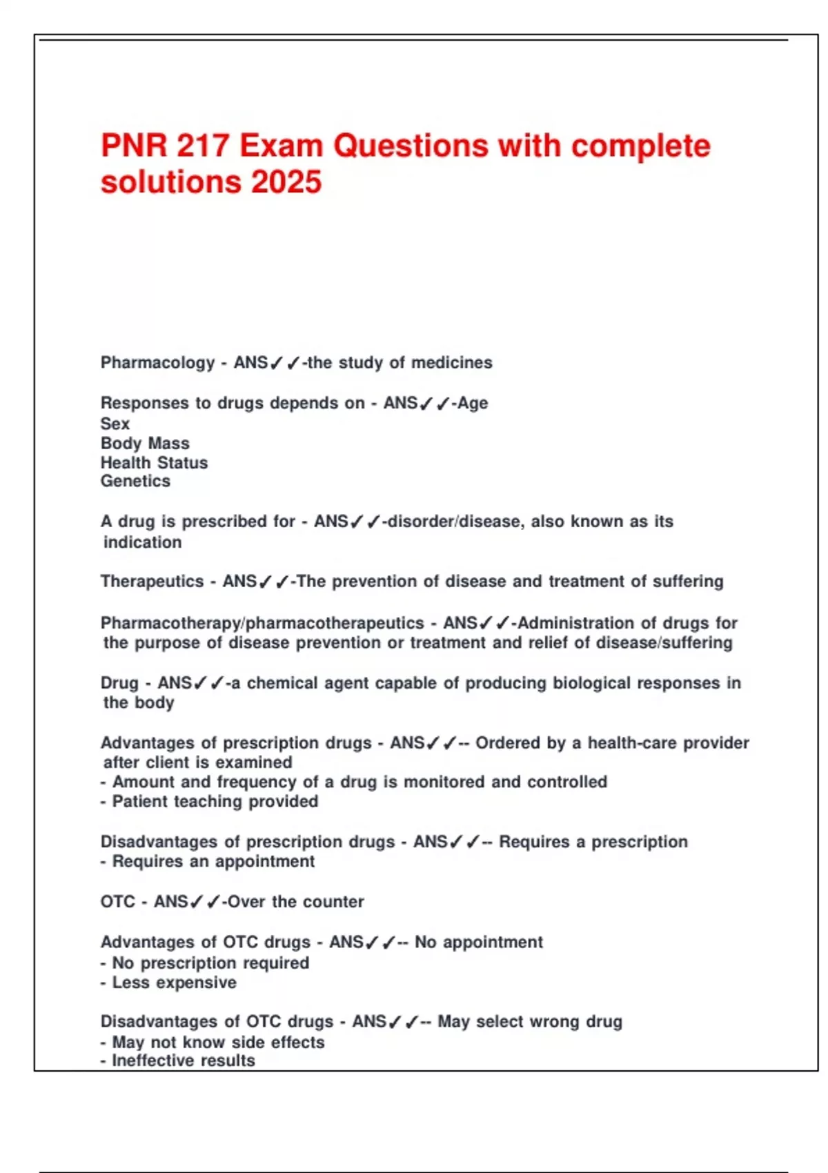PNR 217 Exam Questions with complete solutions 2025.