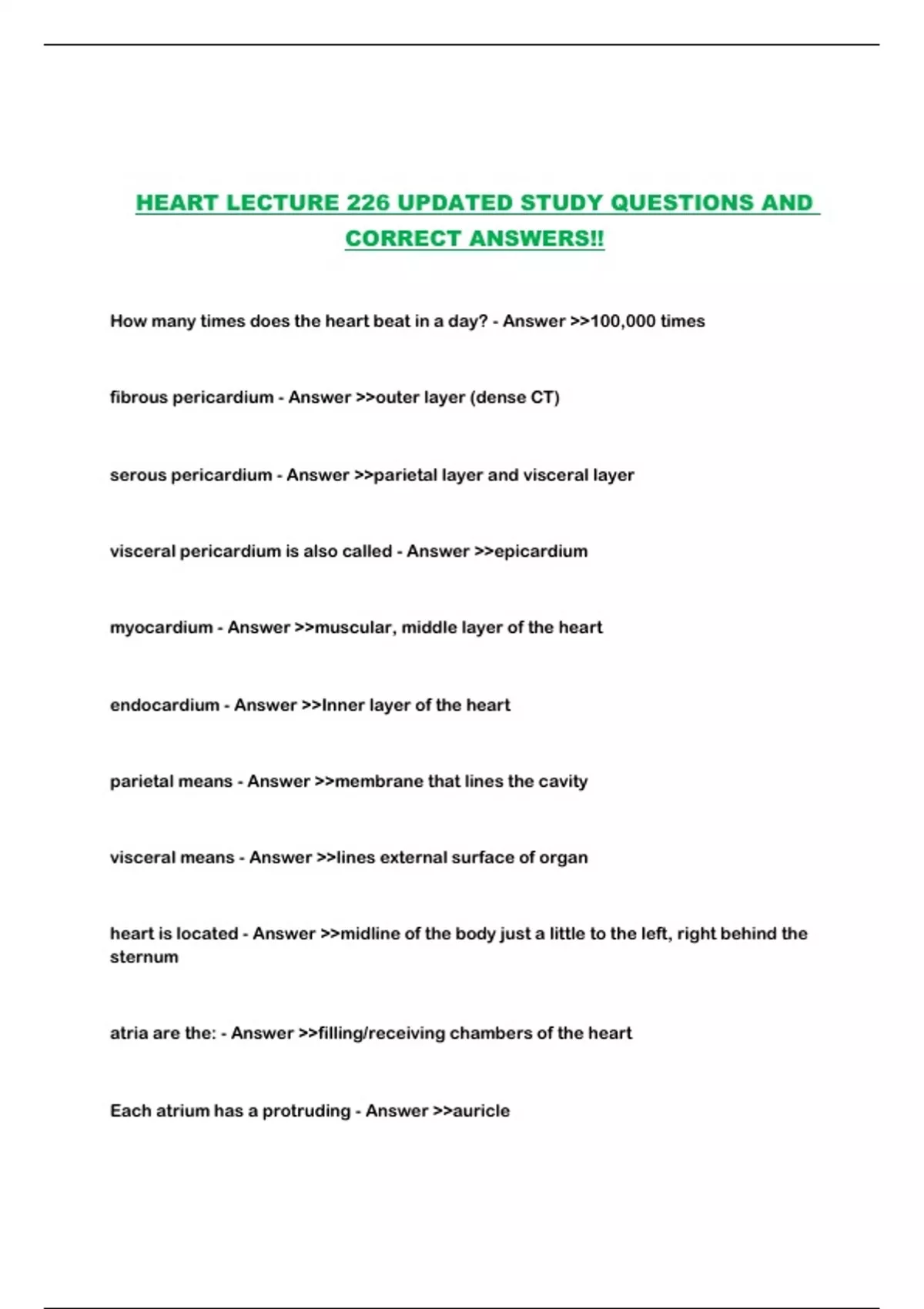 HEART LECTURE 226 UPDATED STUDY QUESTIONS AND CORRECT ANSWERS!!...
