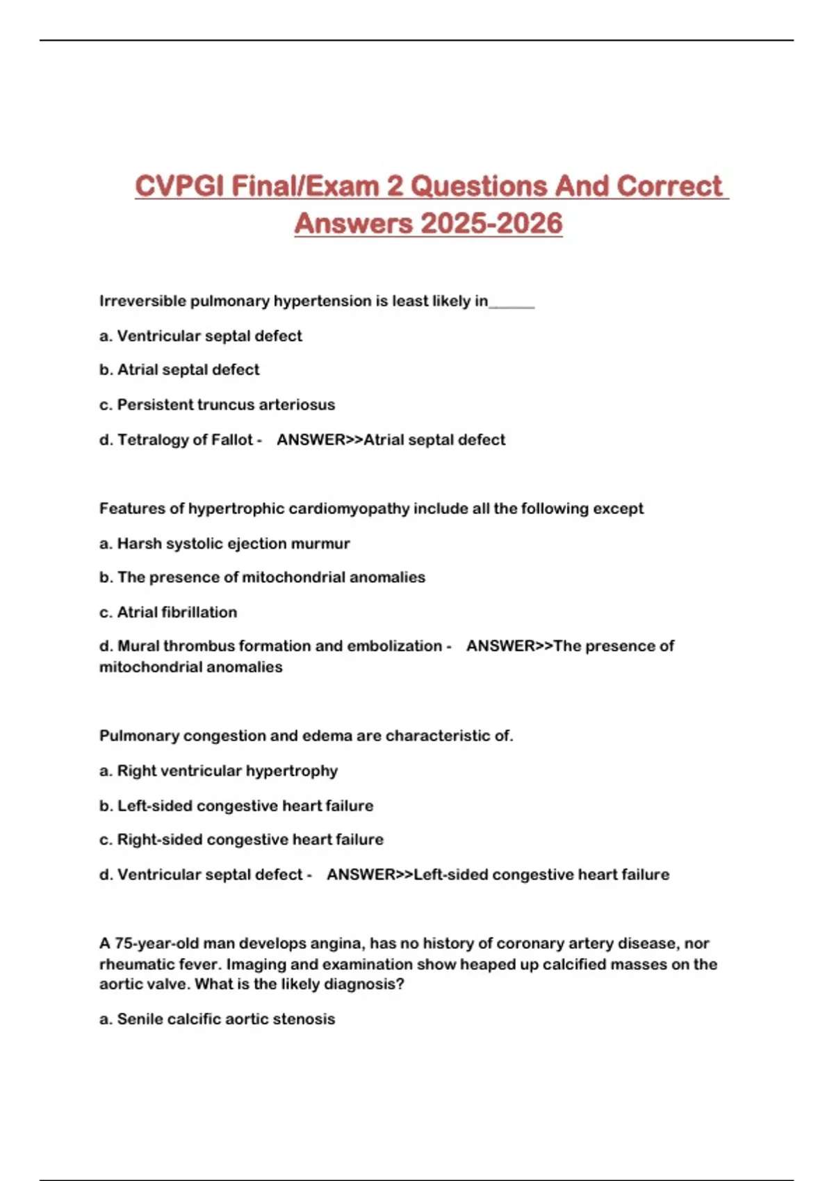 c. Restrictive cardiomyopathy - ANSWER>>Hypertrophic cardiomyopathy