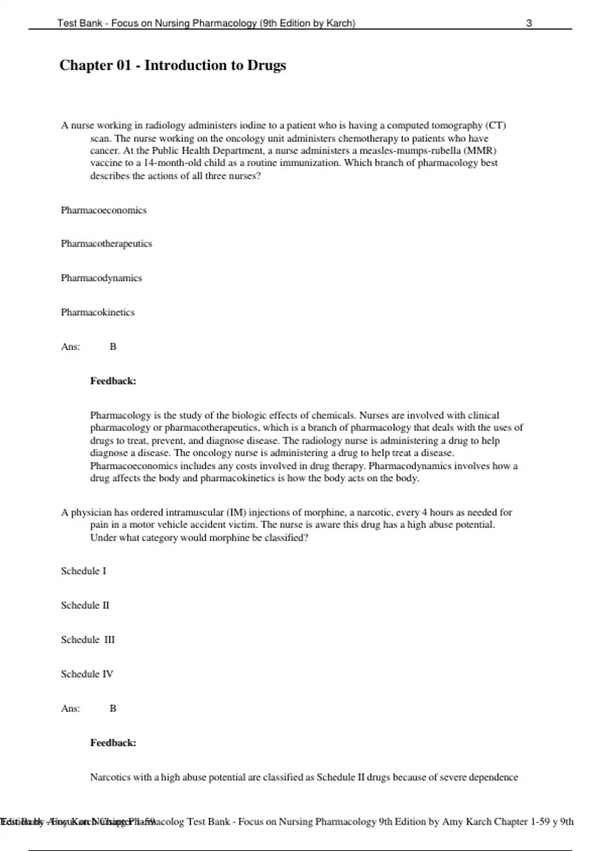 1-59 Test Bank - Focus on Nursing Pharmacology 9th Edition by Amy Karch Chapter 1-59 y 9th