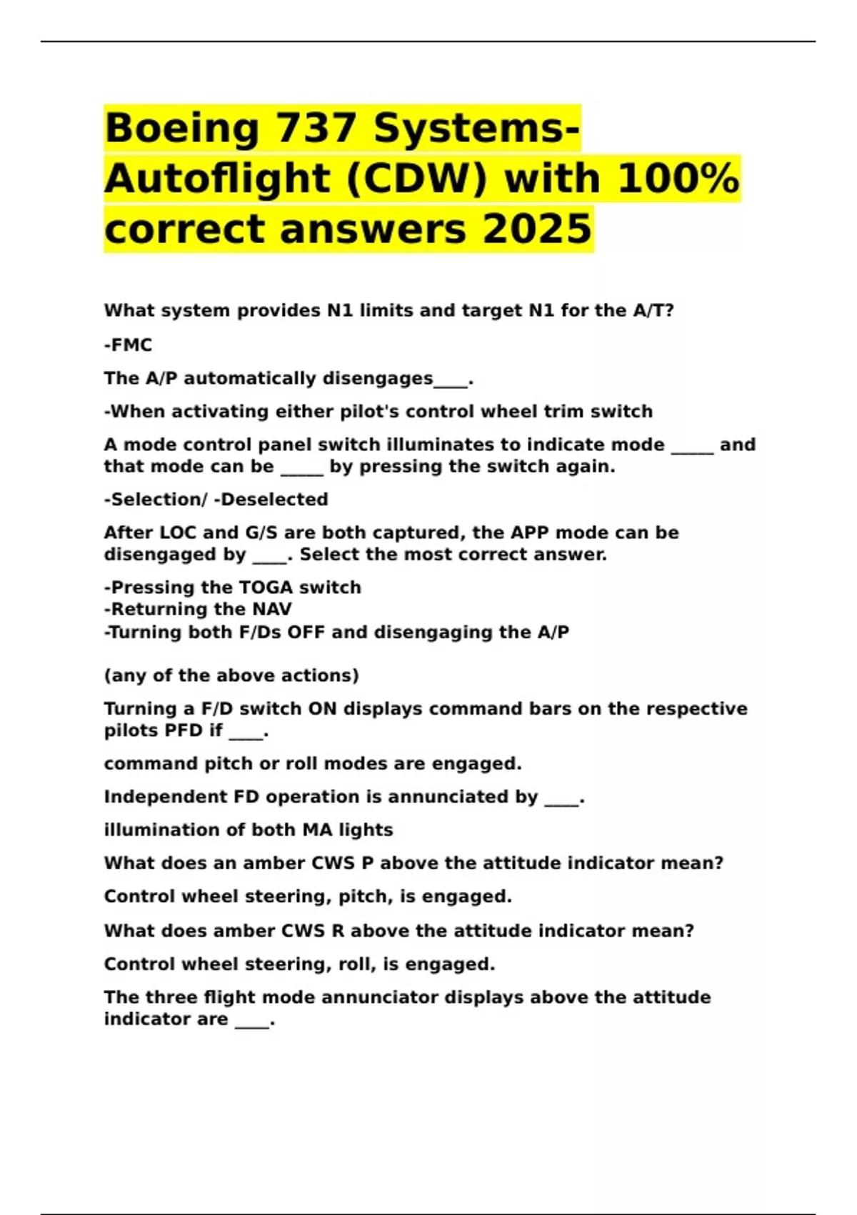Boeing 737 Systems-Autoflight (CDW) with 100- correct answers 2025.