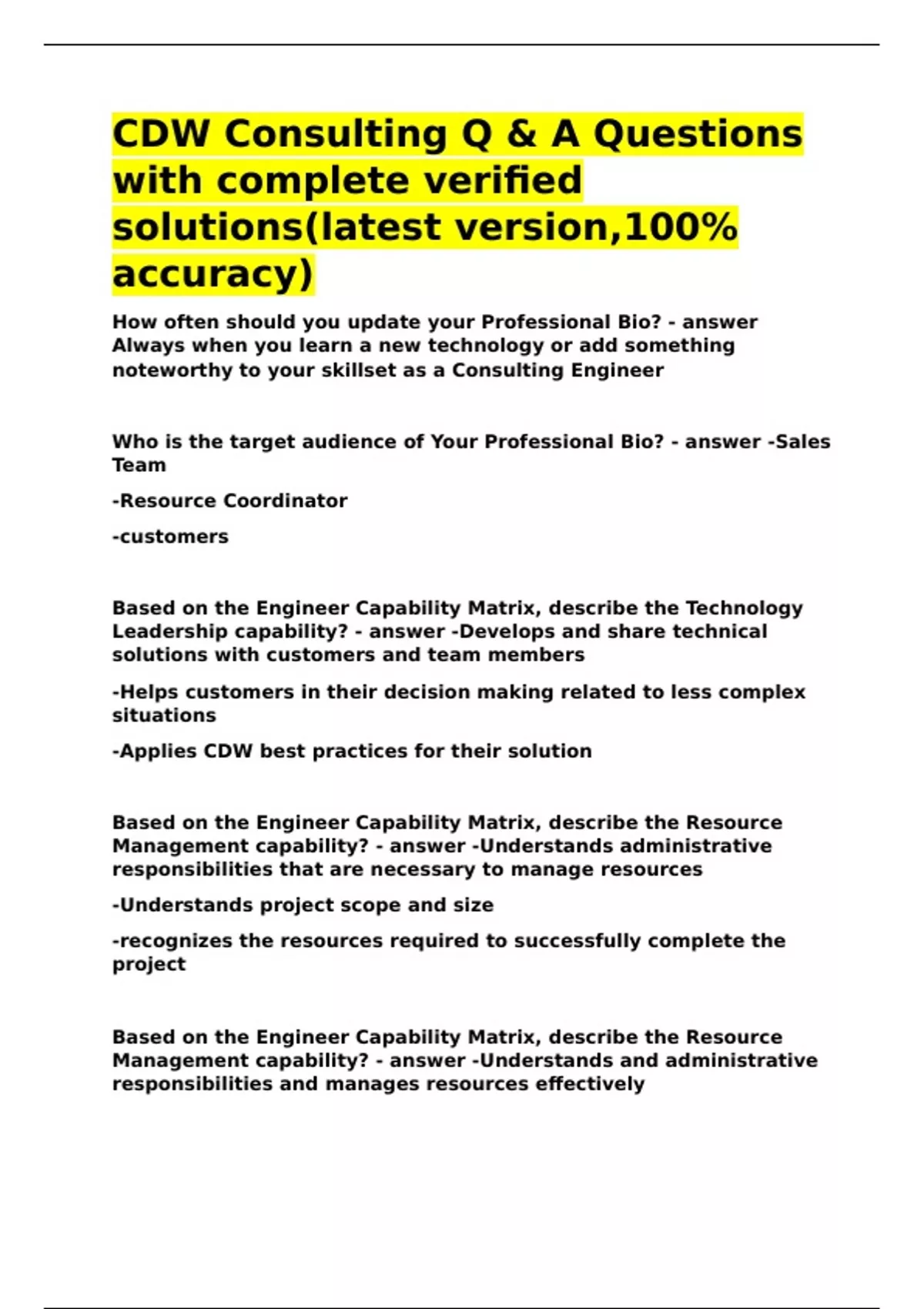 CDW Consulting Q & A Questions with complete verified solutions(latest version,100- accuracy).