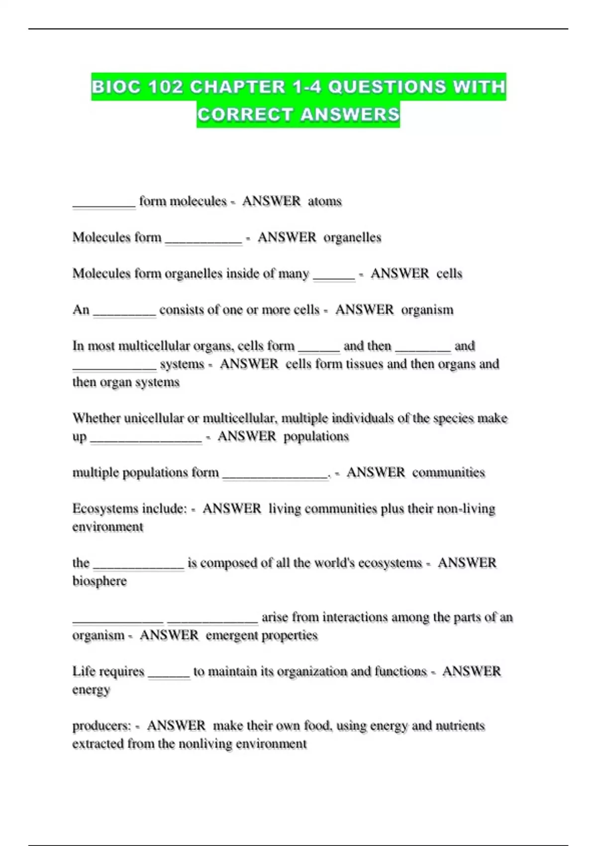 BIOC 102 CHAPTER 1-4 QUESTIONS WITH CORRECT ANSWERS....