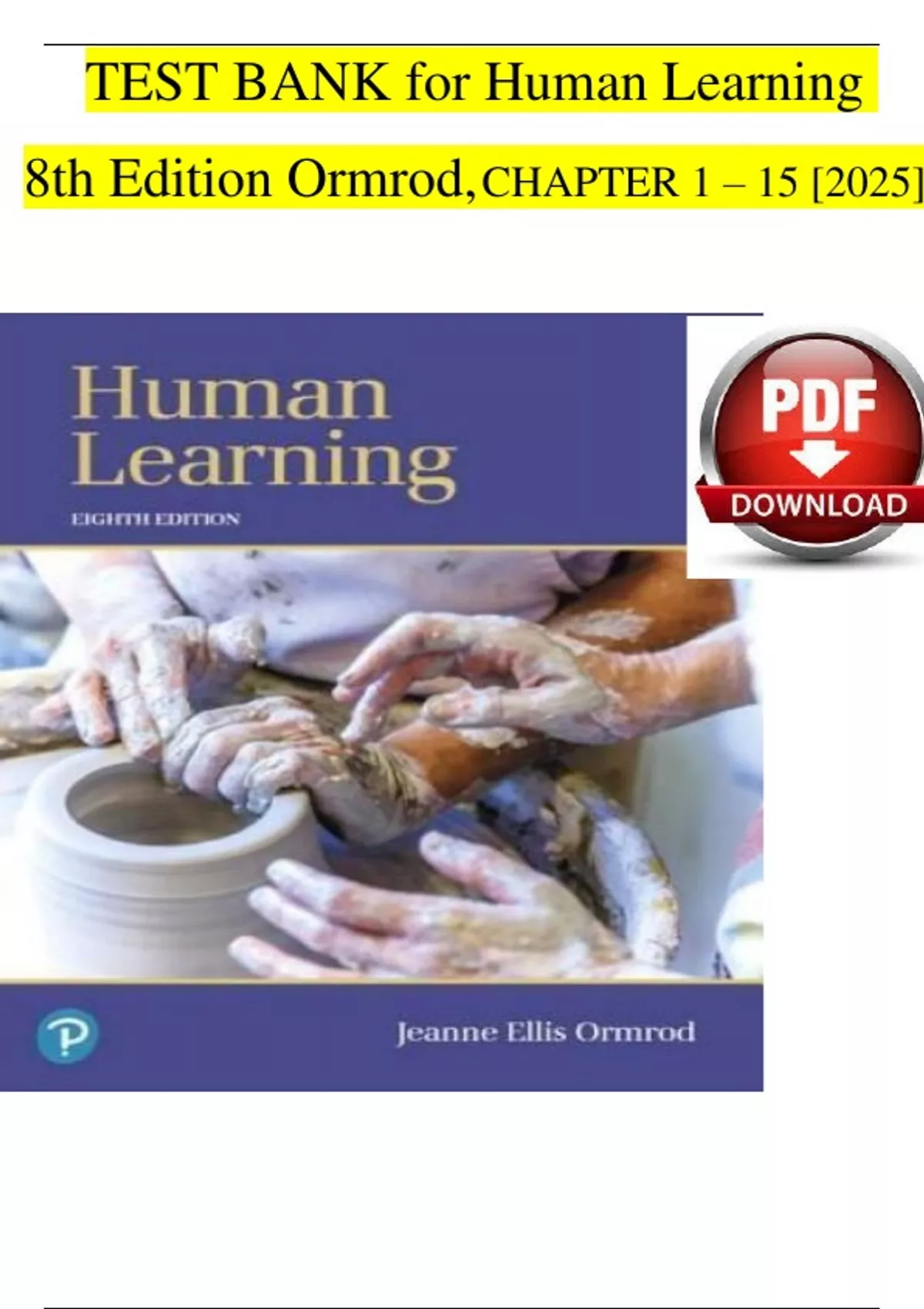 TEST BANK for Human Learning 8th Edition Ormrod,CHAPTER 1 – 15 [2025]