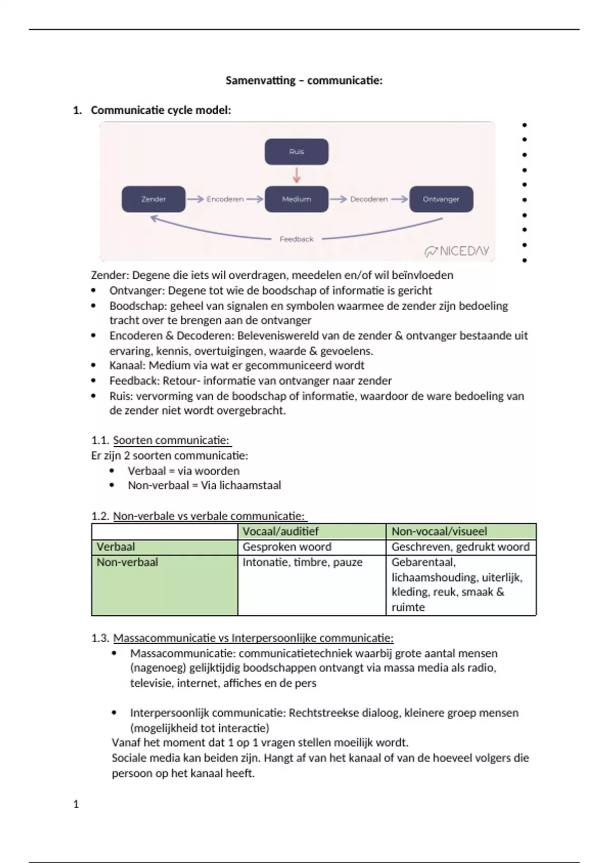 1. Communicatie cycle model: