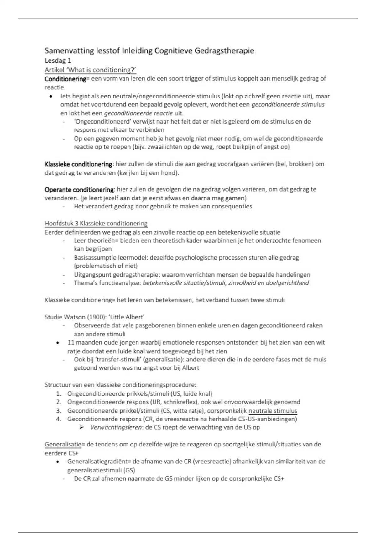Samenvatting lesstof Inleiding Cognitieve Gedragstherapie