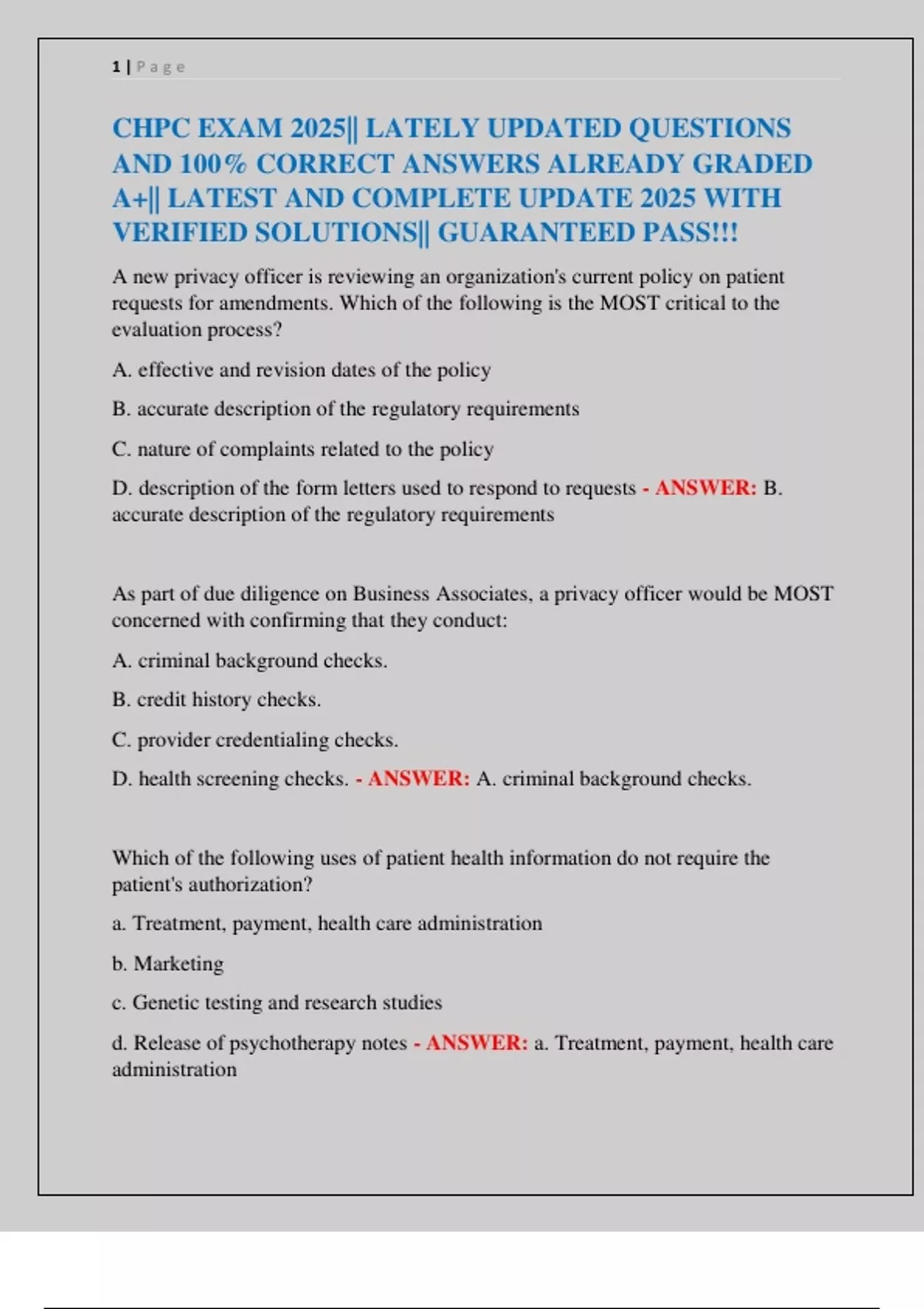 CHPC EXAM 2025|| LATELY UPDATED QUESTIONS