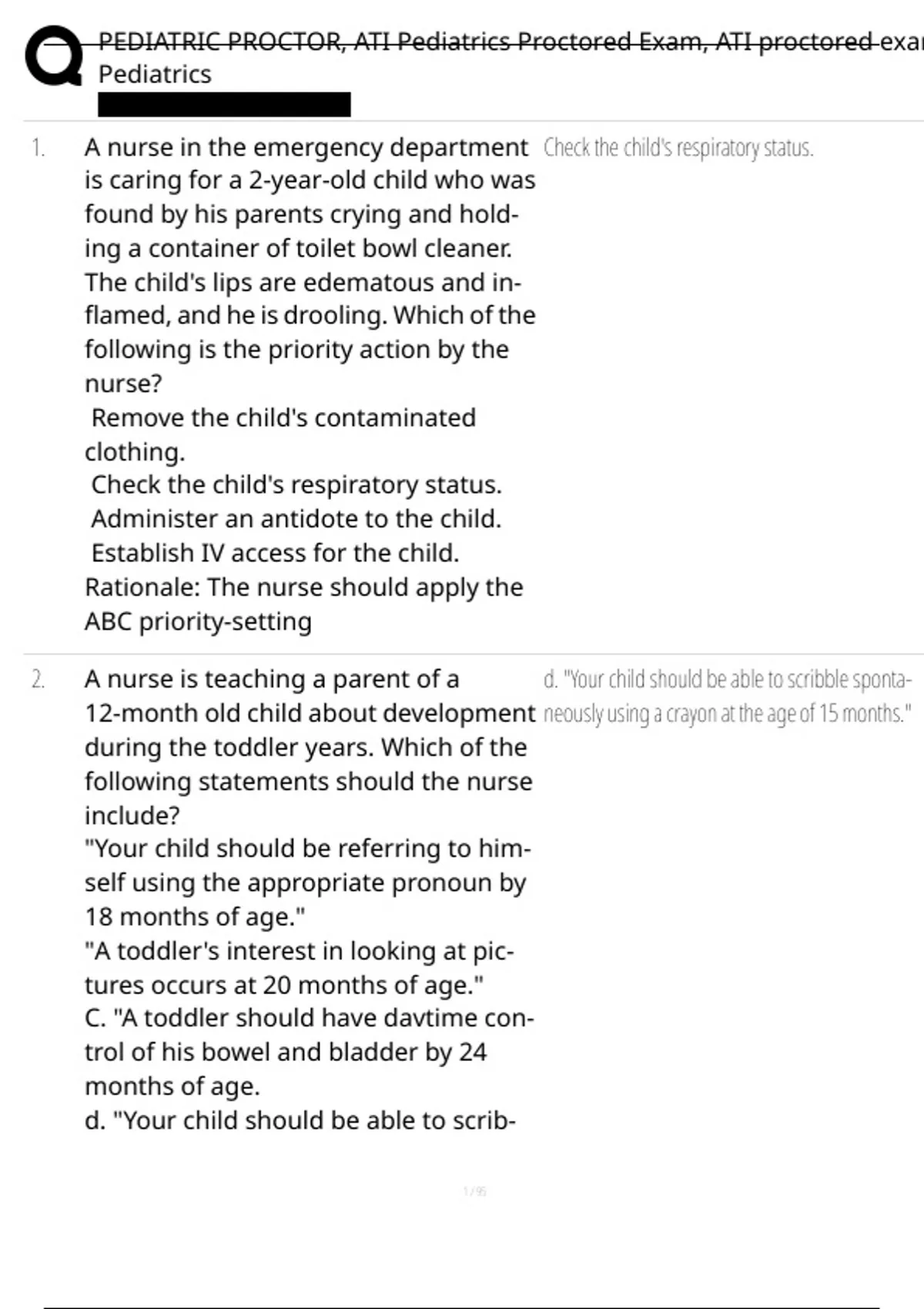 , PEDIATRIC PROCTOR, ATI Pediatrics Proctored Exam, ATI proctored exam