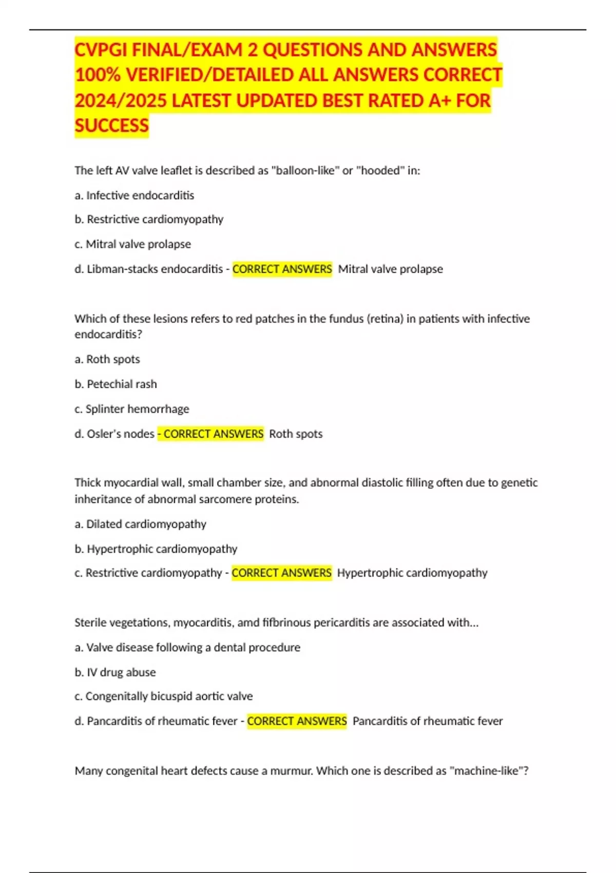 CVPGI FINAL/EXAM 2 QUESTIONS AND ANSWERS