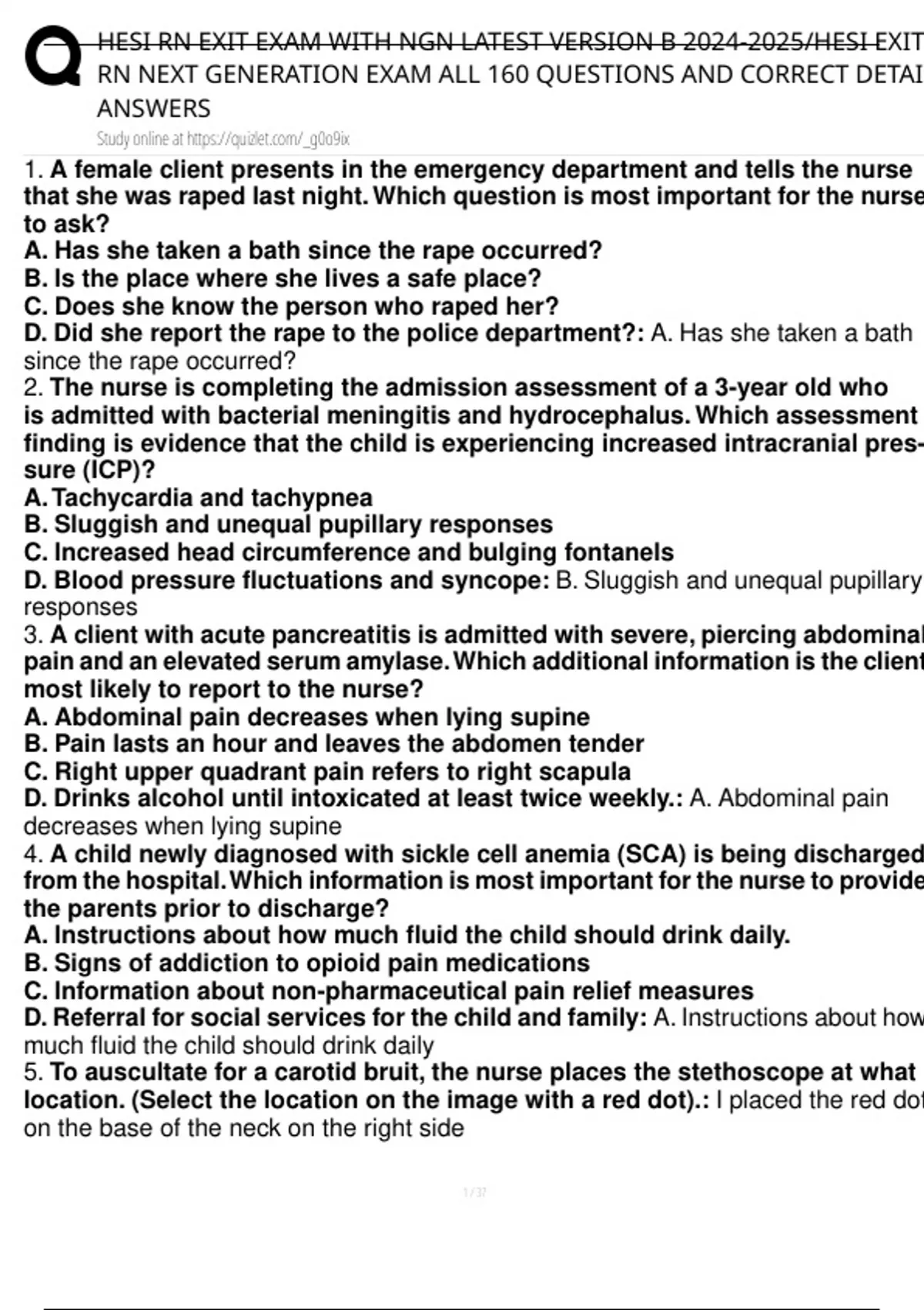 RN NEXT GENERATION EXAM ALL 160 QUESTIONS AND CORRECT DETAI