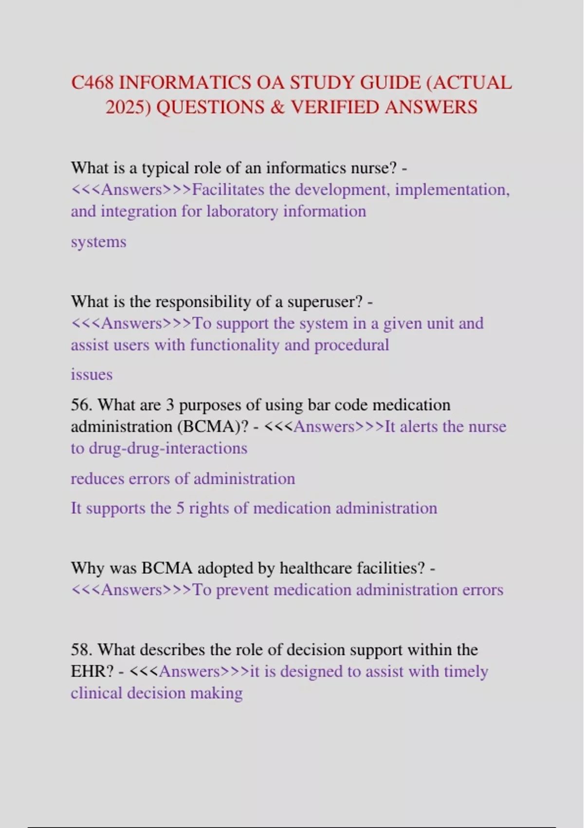 C468 INFORMATICS OA STUDY GUIDE (ACTUAL 2025) QUESTIONS & VERIFIED ANSWERS