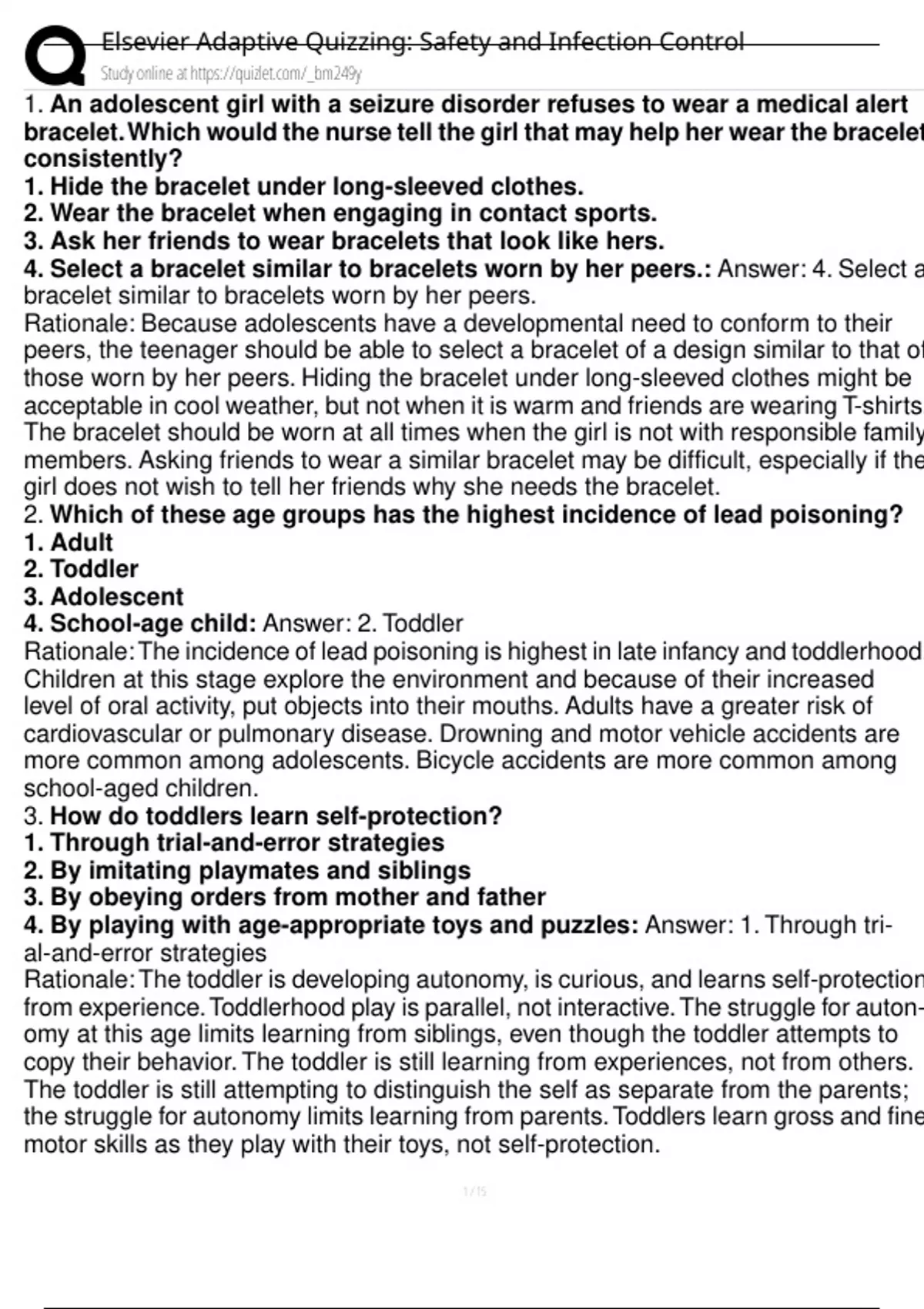, Elsevier Adaptive Quizzing: Safety and Infection Control