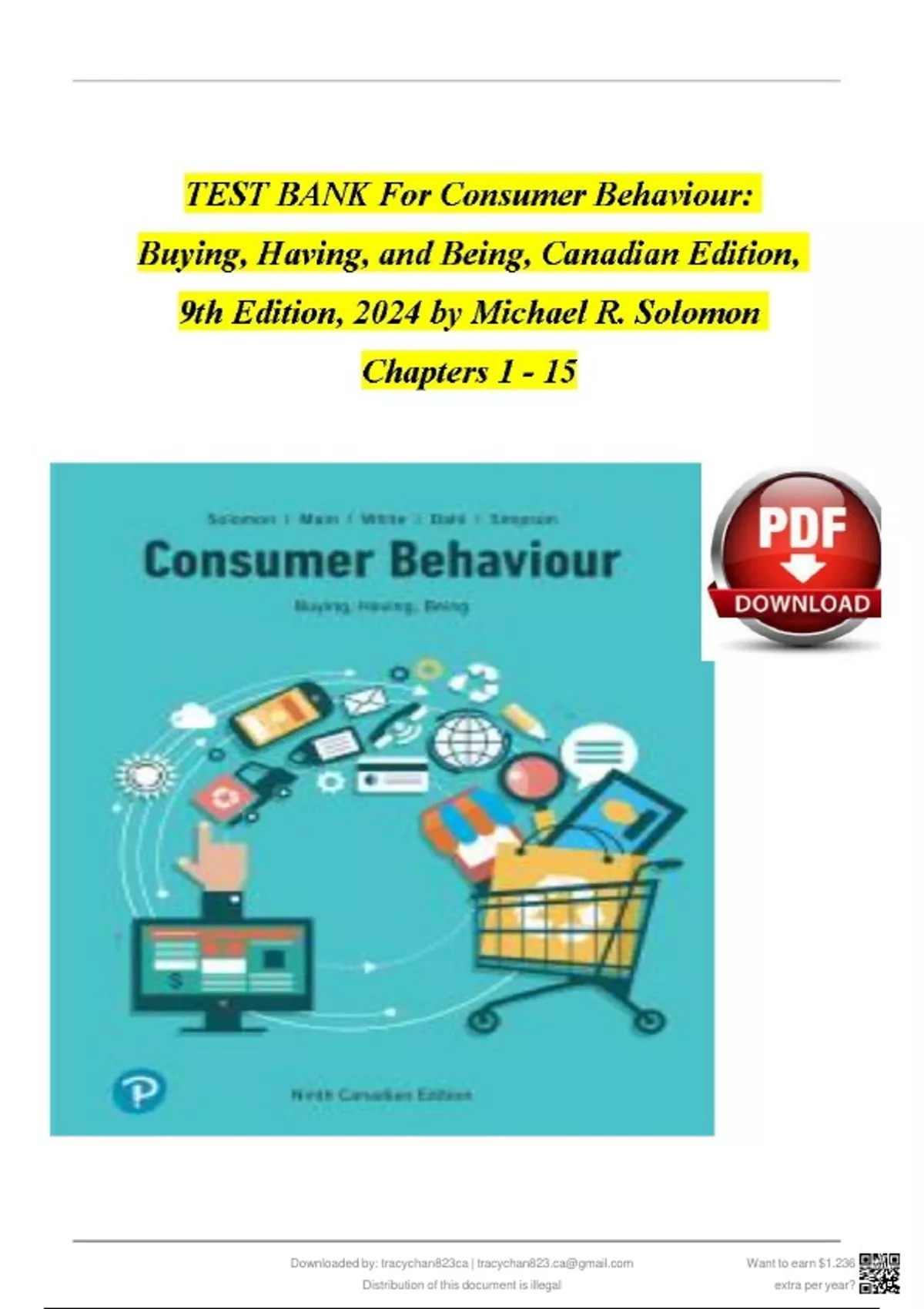TEST BANK For Consumer Behaviour: Buying, Having, and Being, Canadian Edition, 9th Edition, 2024/2025 by Michael R. Solomon, Verified Chapters 1 - 15, Complete Newest Version