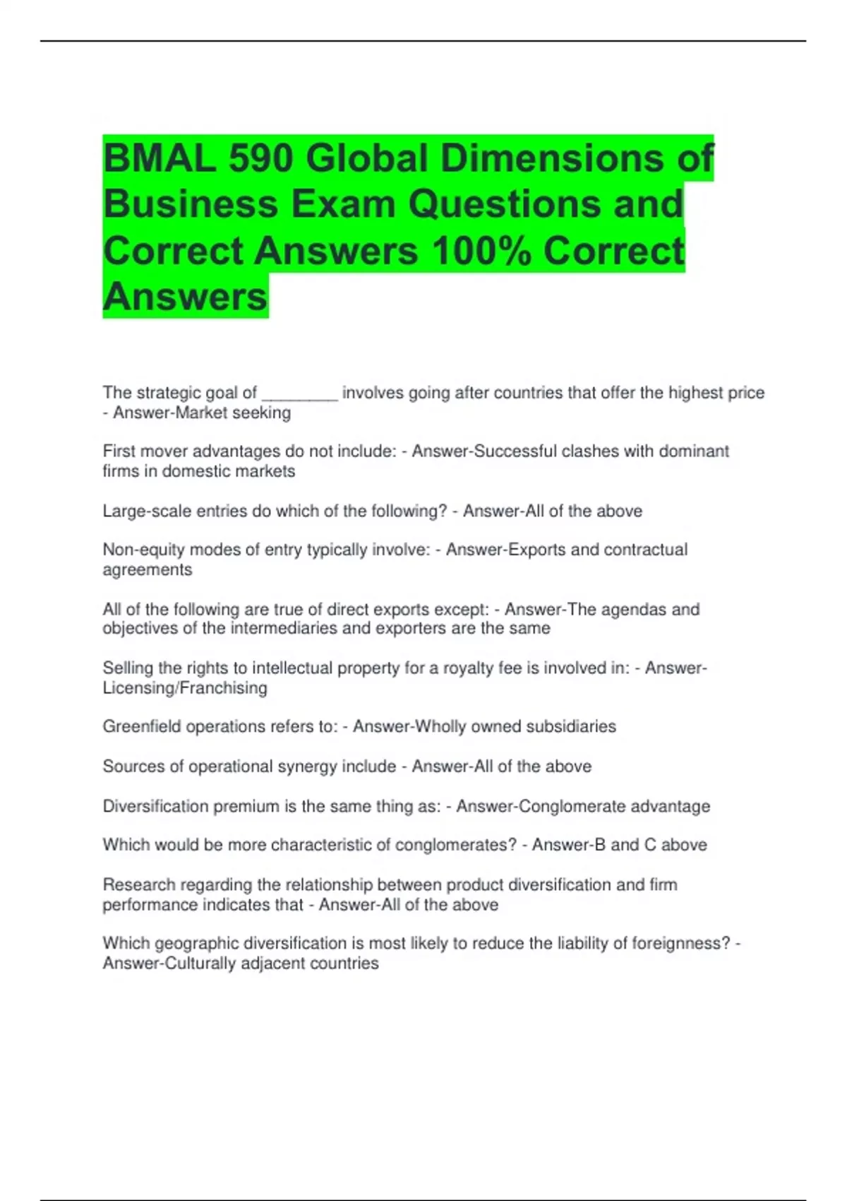 Business Exam Questions and
