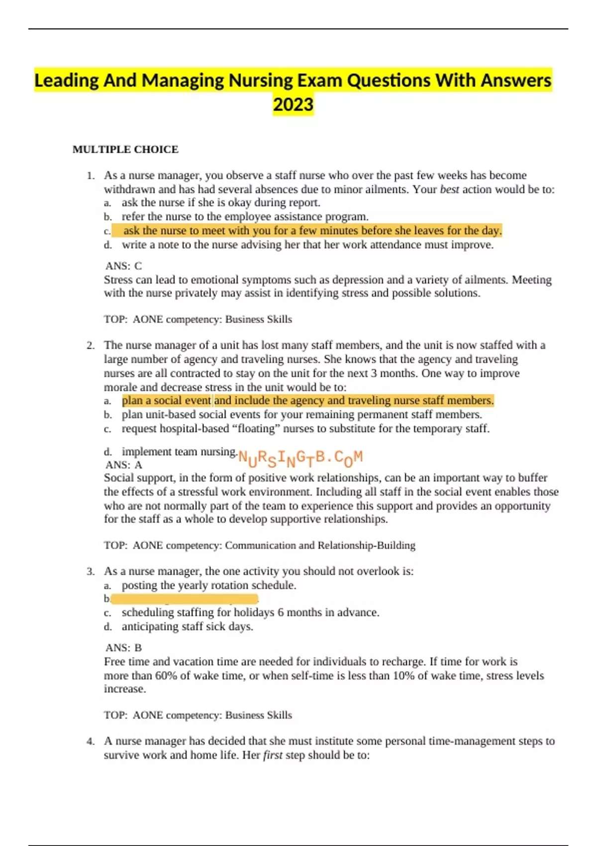 1. As a nurse manager, you observe a staff nurse who over the past few weeks has become