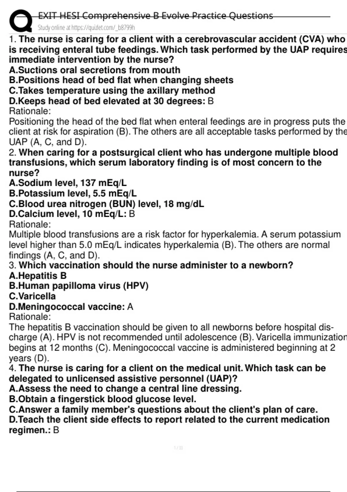 , EXIT HESI Comprehensive B Evolve Practice Questions