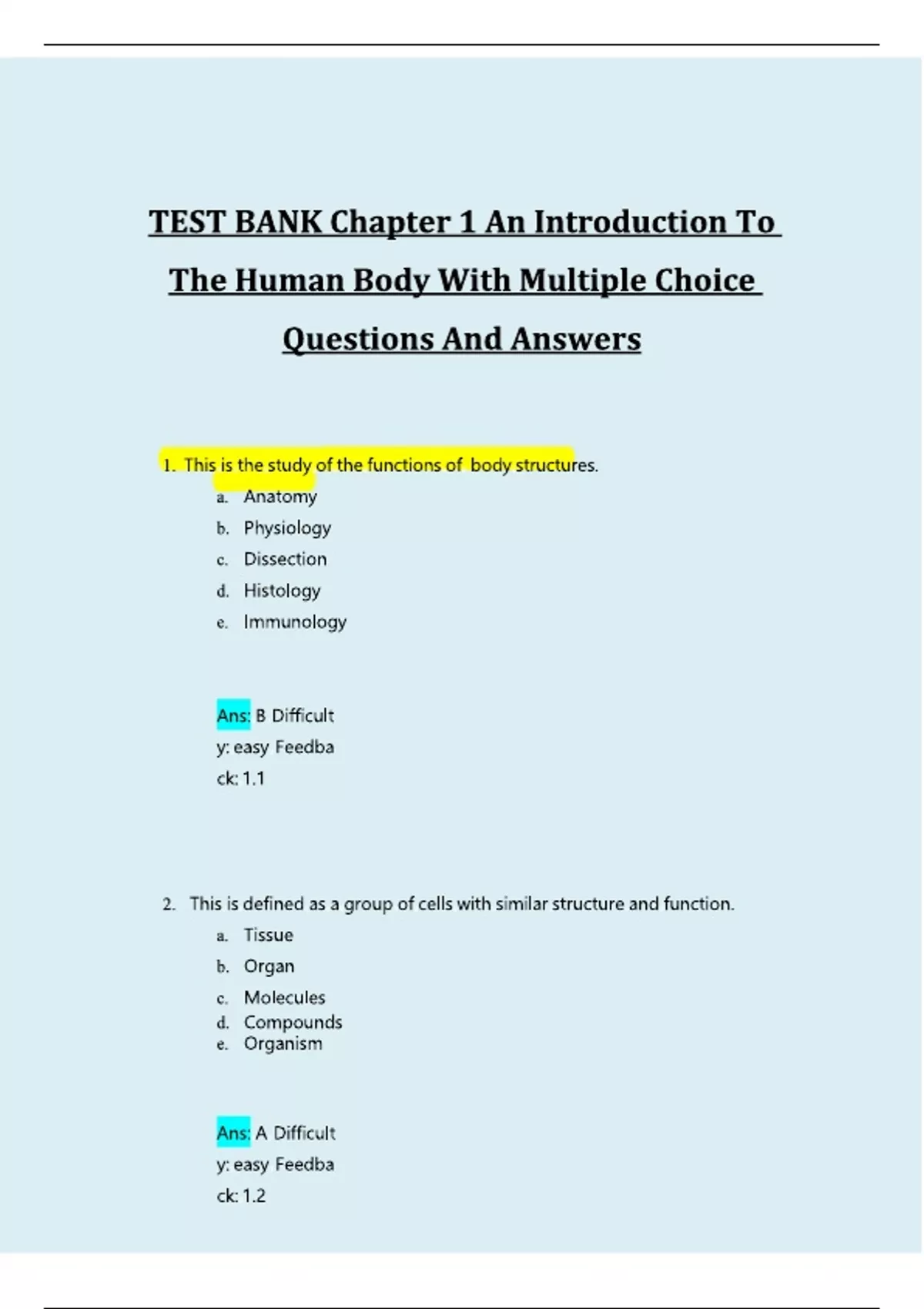 Test bank human body Chapter 1 human body questions MCQ human body introduction Graded test bank 2025 Human body chapter 1 answers Multiple choice questions human body Introduction to human body test bank Human body test bank 2025 Test bank graded A+ MCQ chapter 1 human body Human body questions and answers Latest test bank human body Chapter 1 human body test Medical test bank 2025 Human anatomy test bank Test bank with answers 2025 Anatomy test questions chapter 1 Human body MCQs 2025 Introduction anatomy test bank Study guide human body chapter 1 Human body exam questions Online test bank human body Updated test bank 2025 Test bank chapter 1 anatomy Human physiology test bank