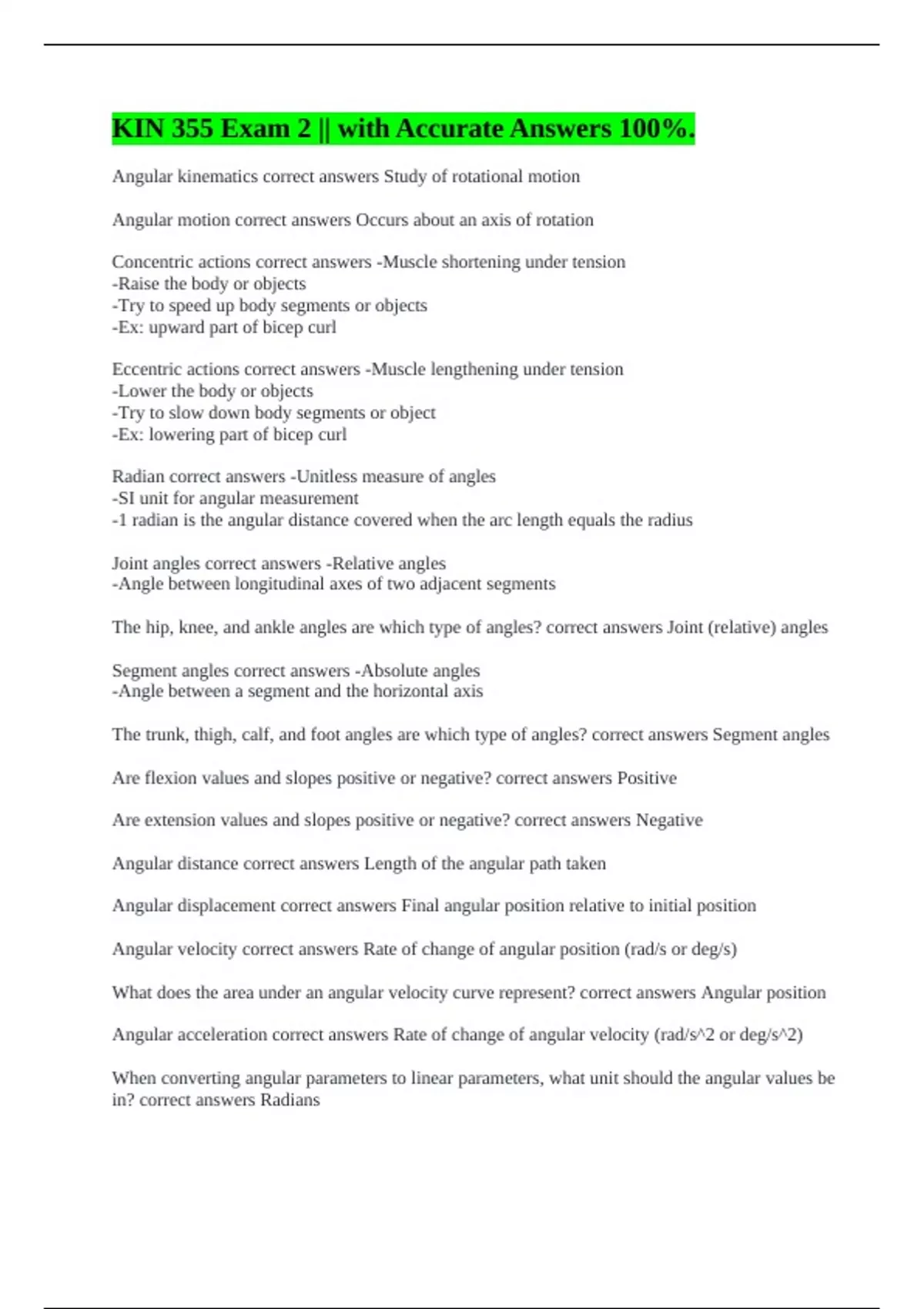 Angular motion correct answers Occurs about an axis of rotation