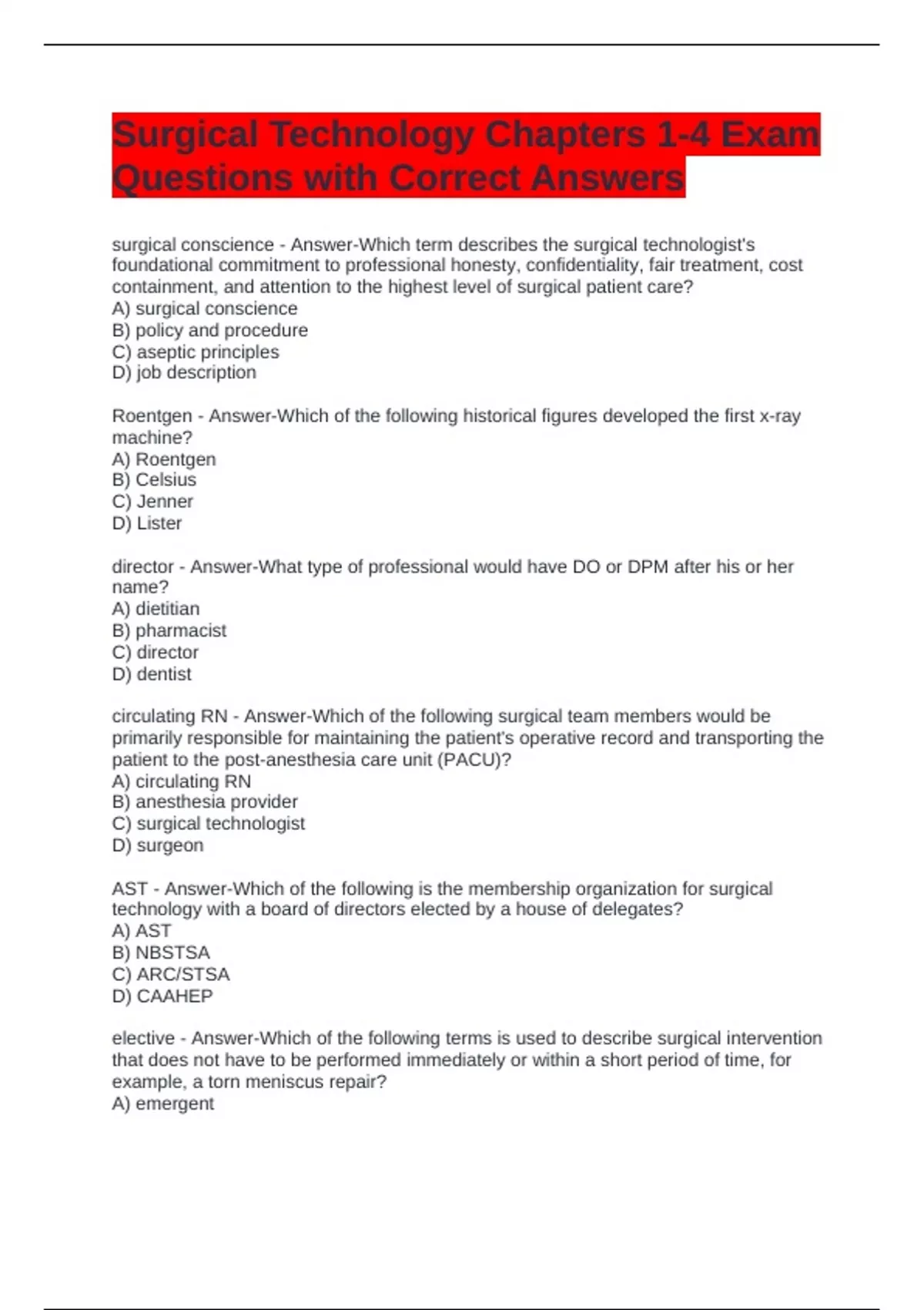 surgical conscience - Answer-Which term describes the surgical technologist's
