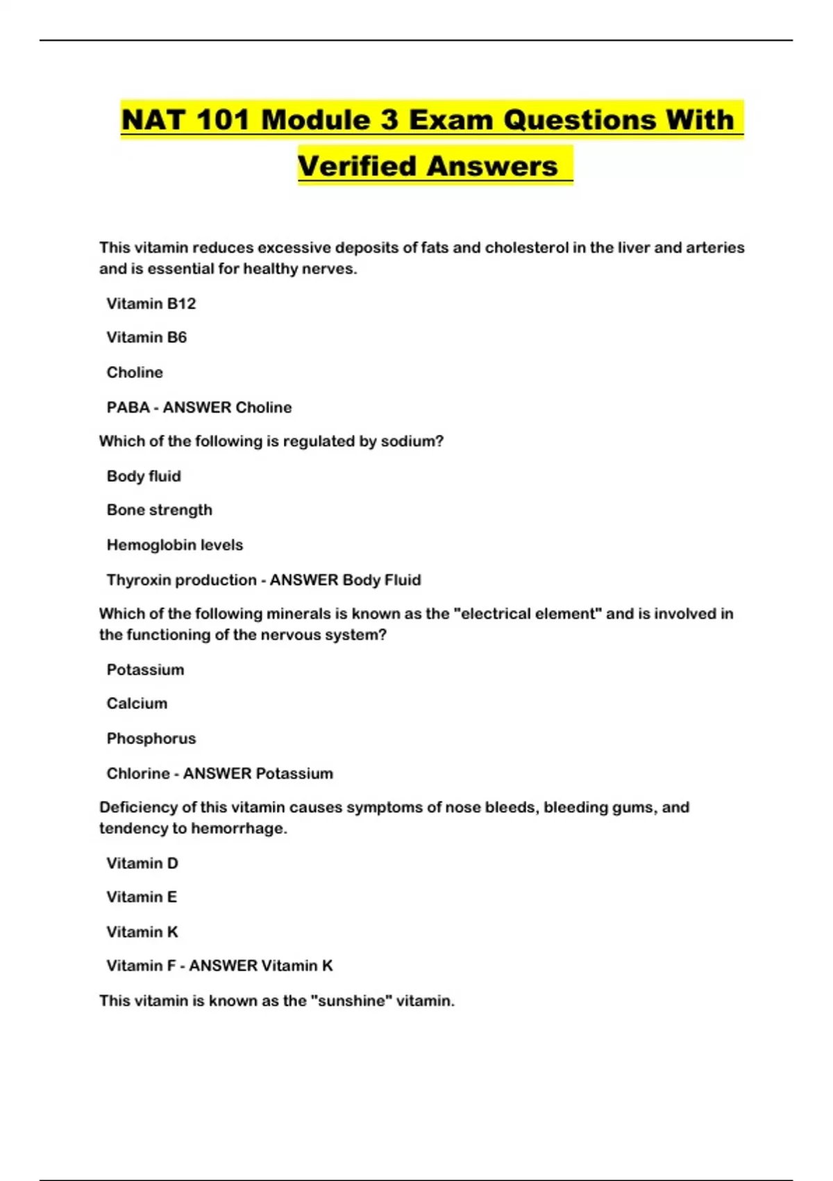 NAT 101 Module 3 Exam Questions With Verified Answers