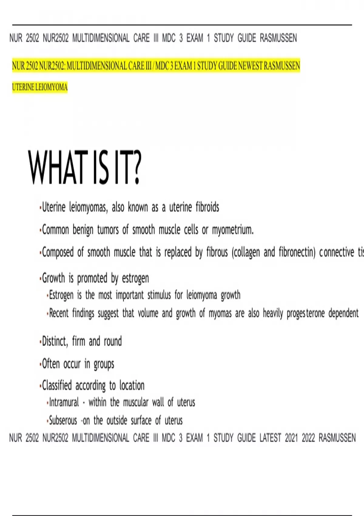 NUR 2502 NUR2502: MULTIDIMENSIONAL CARE III / MDC 3 EXAM 1 STUDY GUIDE NEWEST RASMUSSEN