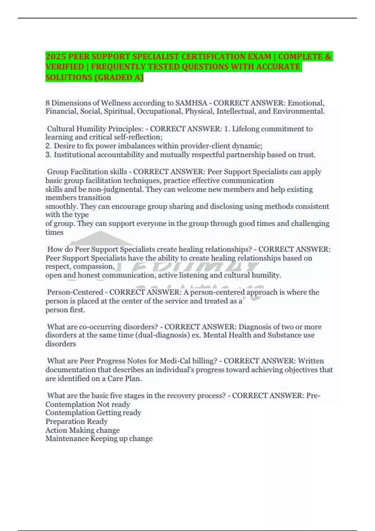 2025 PEER SUPPORT SPECIALIST CERTIFICATION EXAM | COMPLETE &