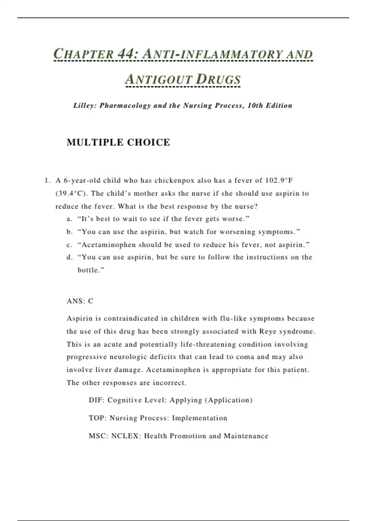 1. A 6-year-old child who has chickenpox also has a fever of 102.9°F