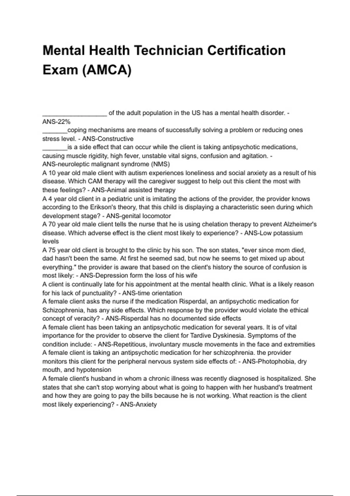 Mental Health Technician Certification Exam (AMCA) NEWEST 2025/2026 ACTUAL EXAM COMPLETE QUESTIONS AND CORRECT DETAILED ANSWERS (VERIFIED ANSWERS) |ALREADY GRADED A+||BRAND NEW!!