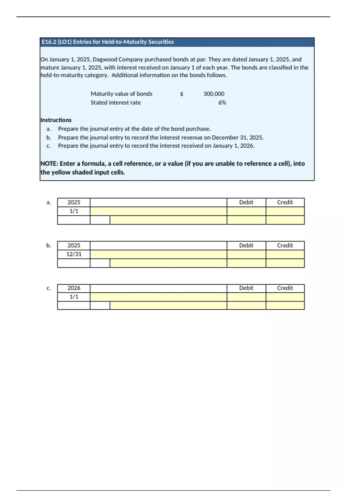 ,Solution: E16.2 (LO1) Entries for Held-to-Maturity Securities