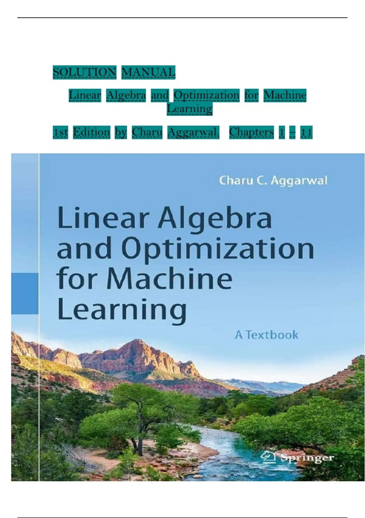 1st Edition by Charu Aggarwal. Chapters 1 – 11