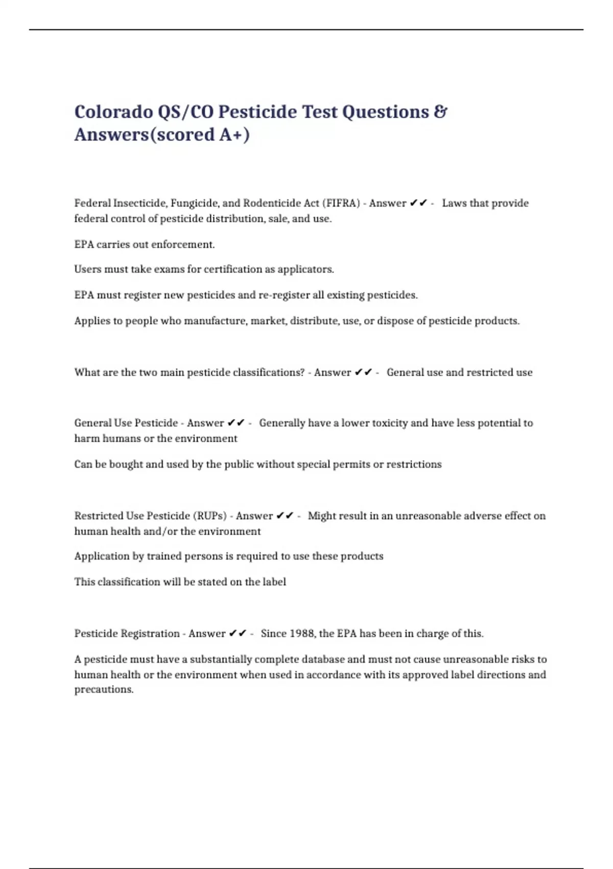 Pesticide Registration - Answer ✔✔ - Since 1988, the EPA has been in charge of this.