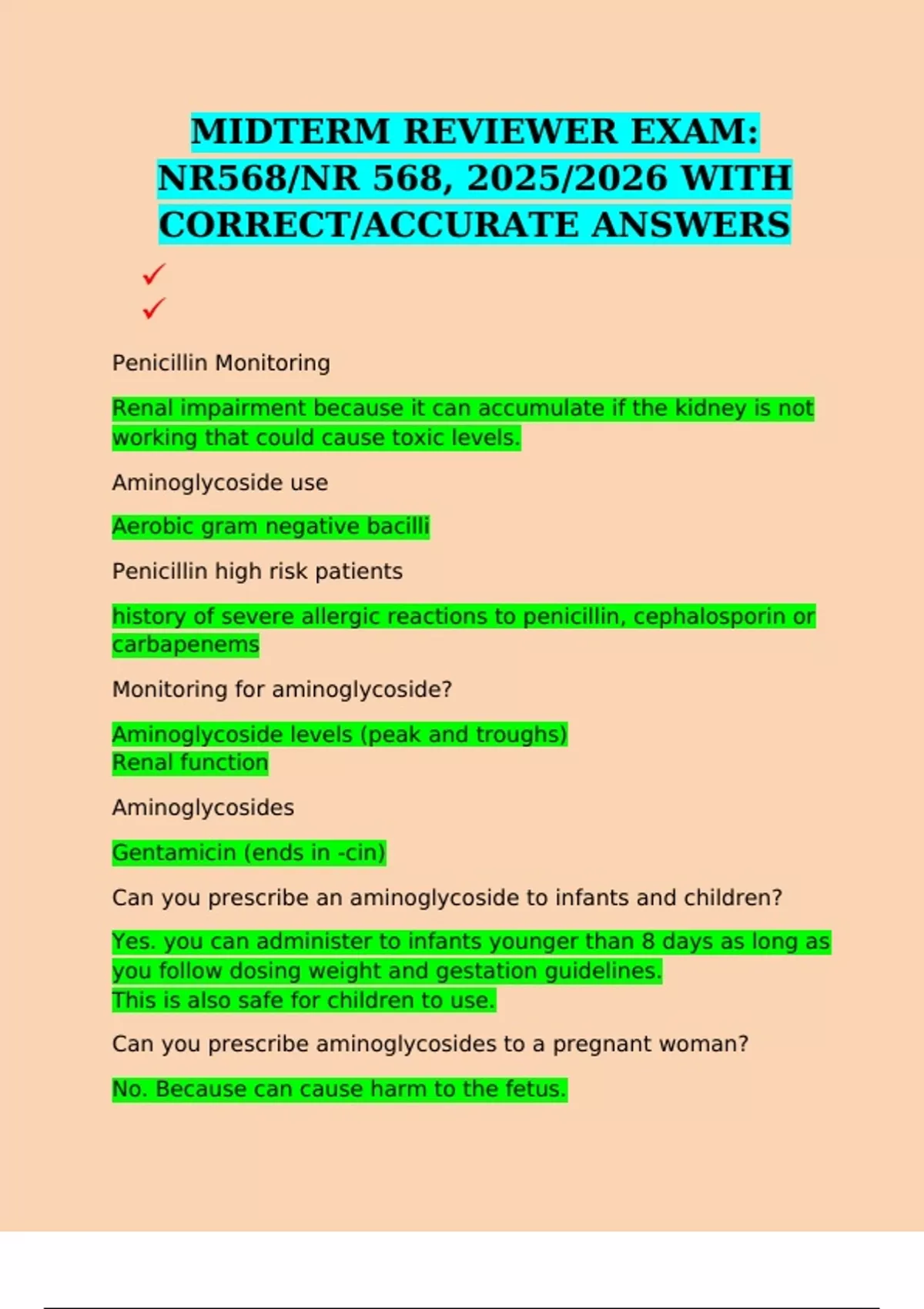 MIDTERM REVIEWER EXAM: NR568/NR 568, 2025/2026 WITH CORRECT/ACCURATE ANSWERS