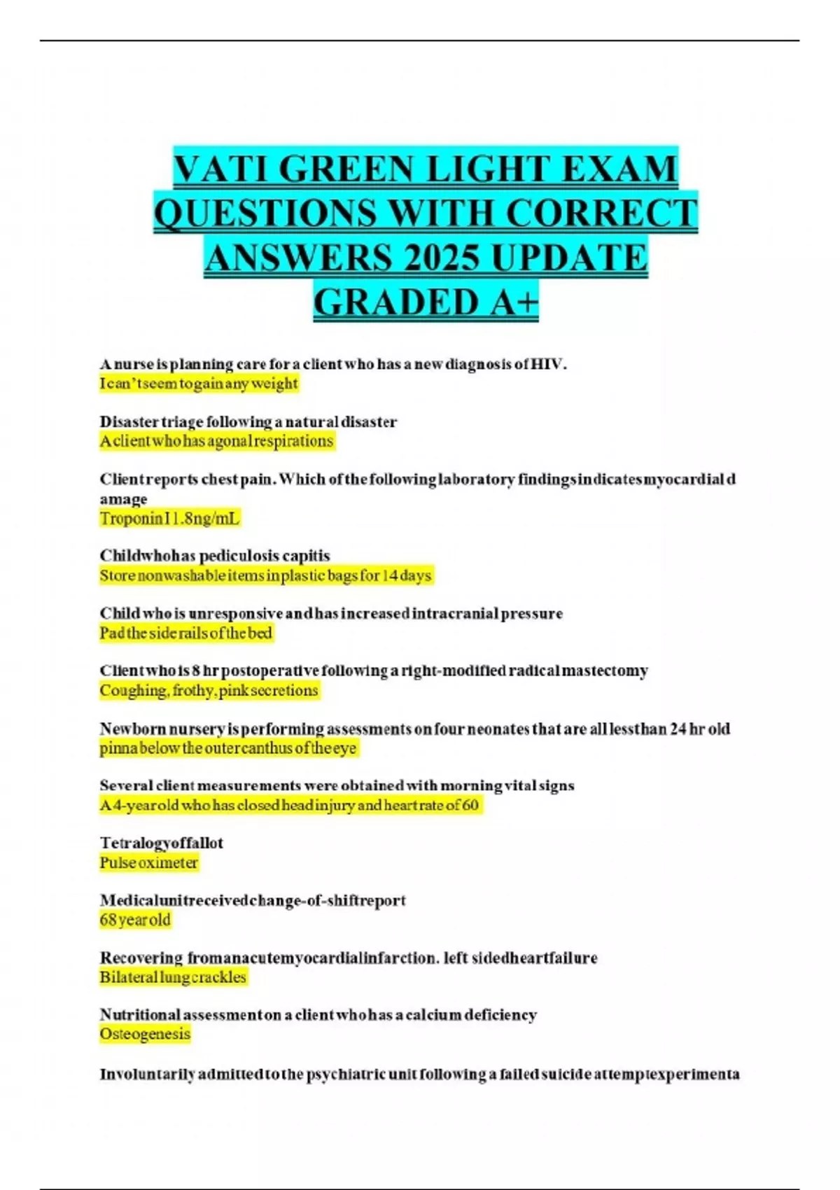 VATI GREEN LIGHT EXAM QUESTIONS WITH CORRECT ANSWERS 2025 UPDATE GRADED A+