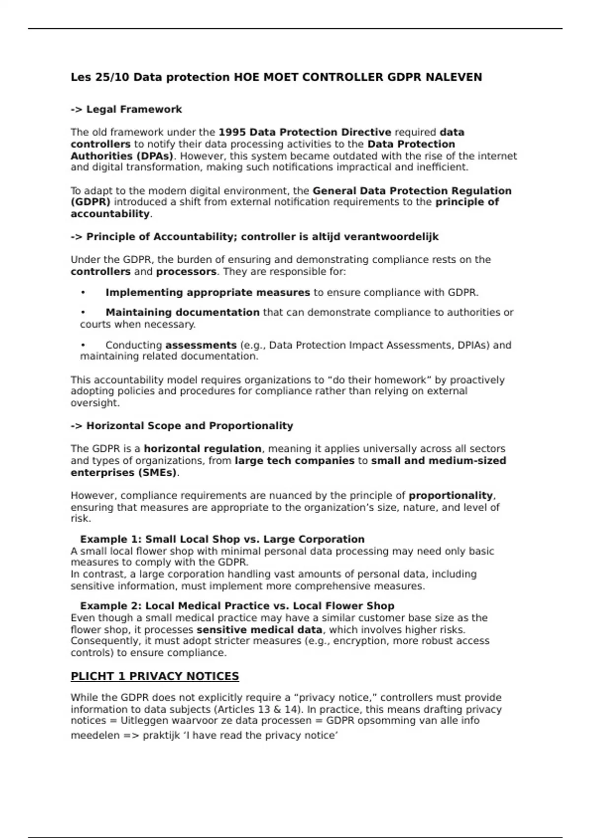 Les 25/10 Data protection HOE MOET CONTROLLER GDPR NALEVEN