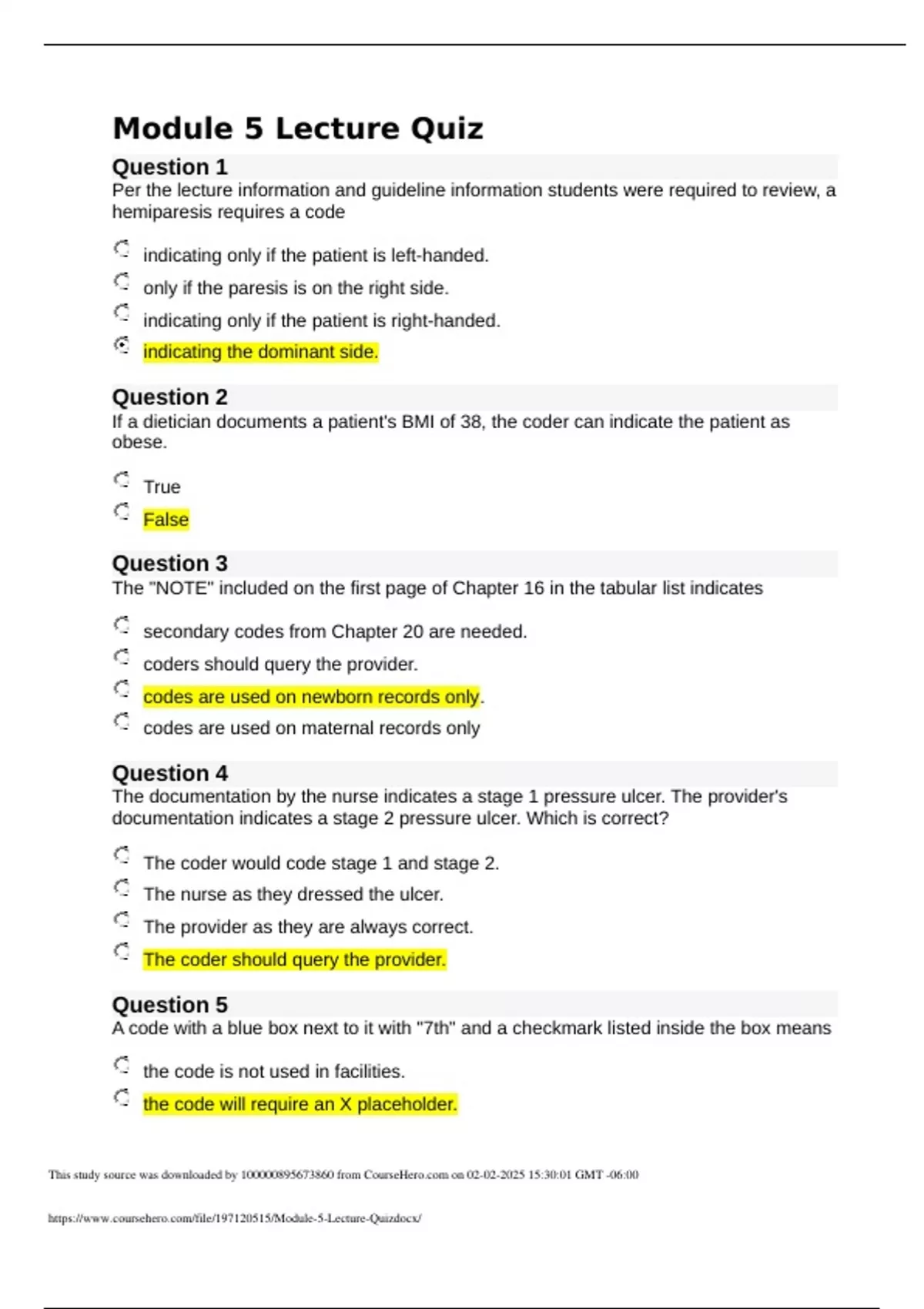If a dietician documents a patient's BMI of 38, the coder can indicate the patient as