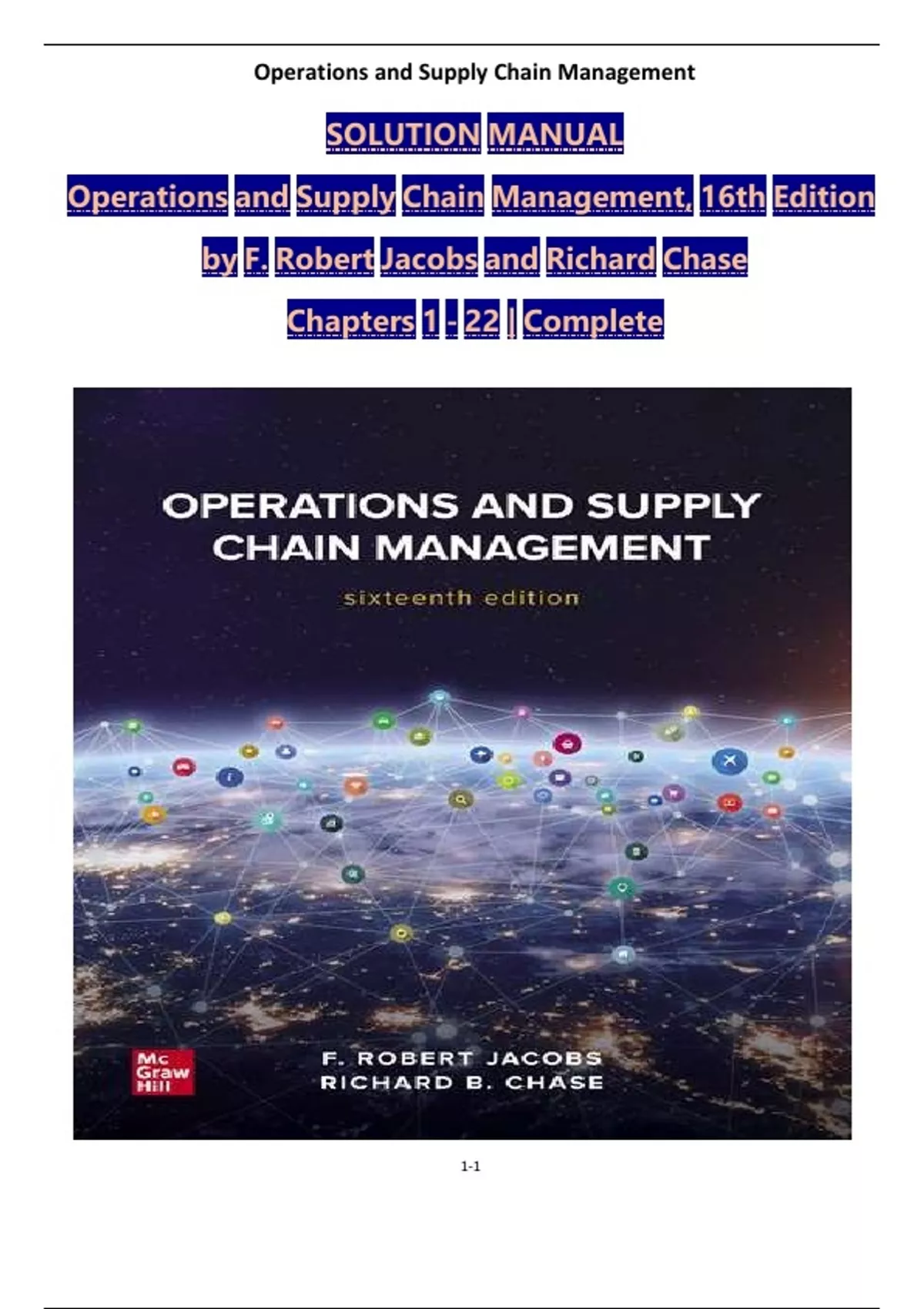 SOLUTION MANUAL Operations and Supply Chain Management 16th Edition , by F. Robert Jacobs and Richard Chase Chapters 1 - 22 | Complete