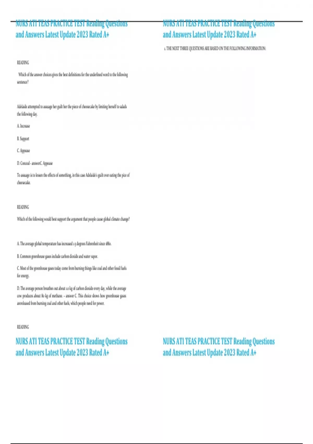 , NURS ATI TEAS PRACTICE TEST Reading Questions NURS ATI TEAS PRACTICE TEST Reading Questions
