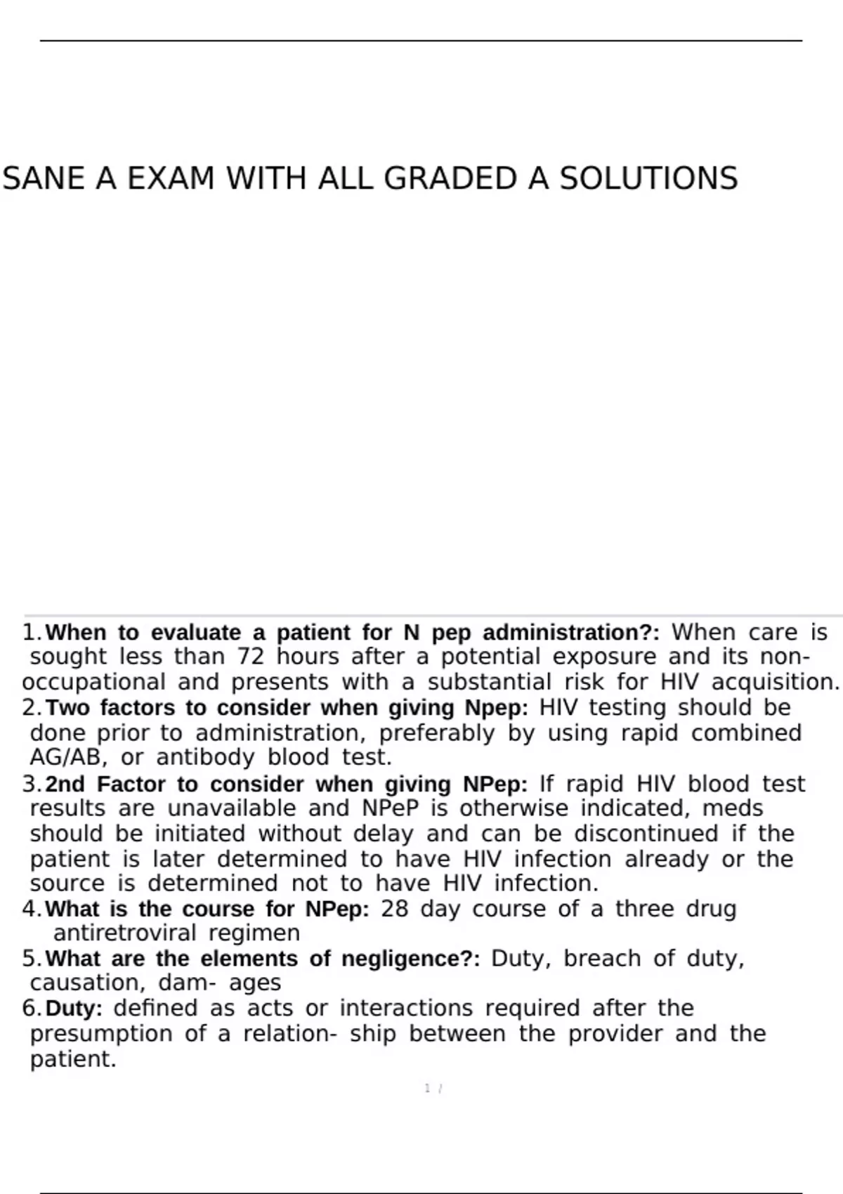 SANE A EXAM WITH ALL GRADED A SOLUTIONS