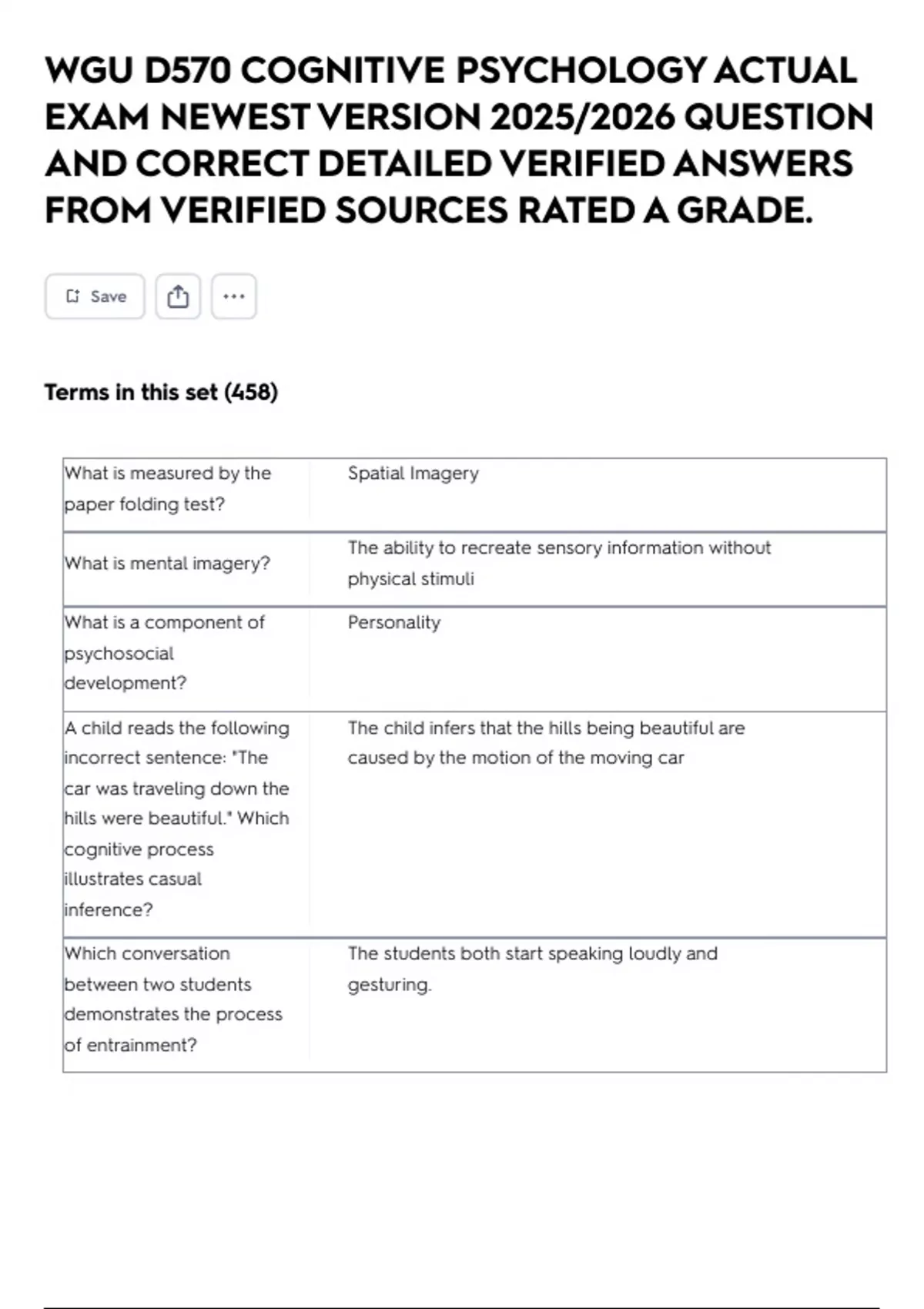 WGU D570 COGNITIVE PSYCHOLOGY ACTUAL EXAM NEWEST VERSION 2025/2026 QUESTION AND CORRECT DETAILED VERIFIED ANSWERS FROM VERIFIED SOURCES RATED A GRADE.