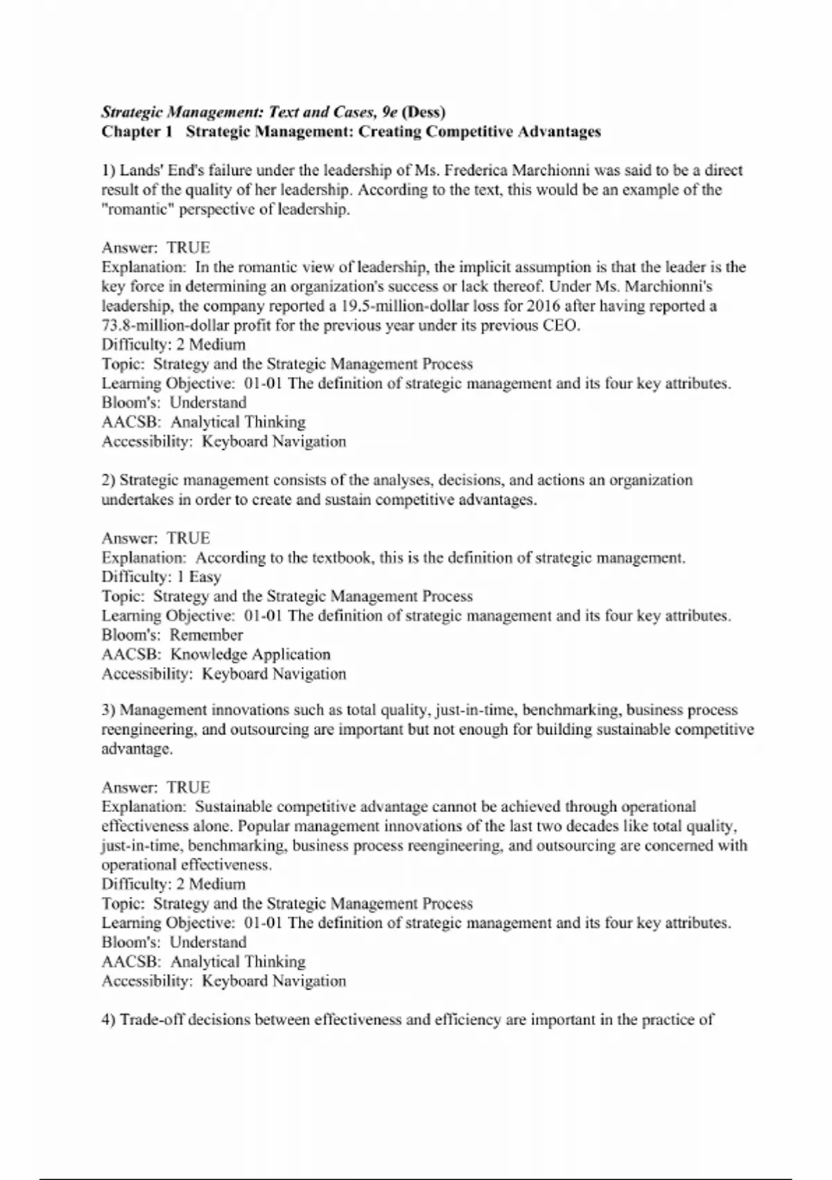 Test Bank for Strategic Management Text and Cases 9th Edition Dess / All Chapters 1 - 12 / Full Complete 2025